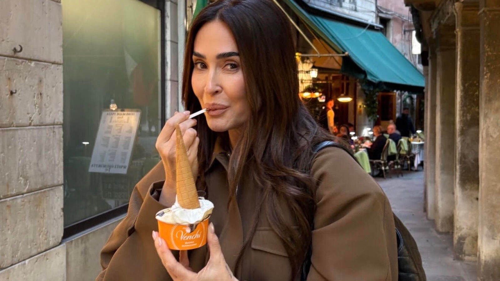 Vicky Martín Berrocal tiene la biker marrón oversize que arrasa en abril: efecto cuero, corte masculino y 450 euros de puro estilo