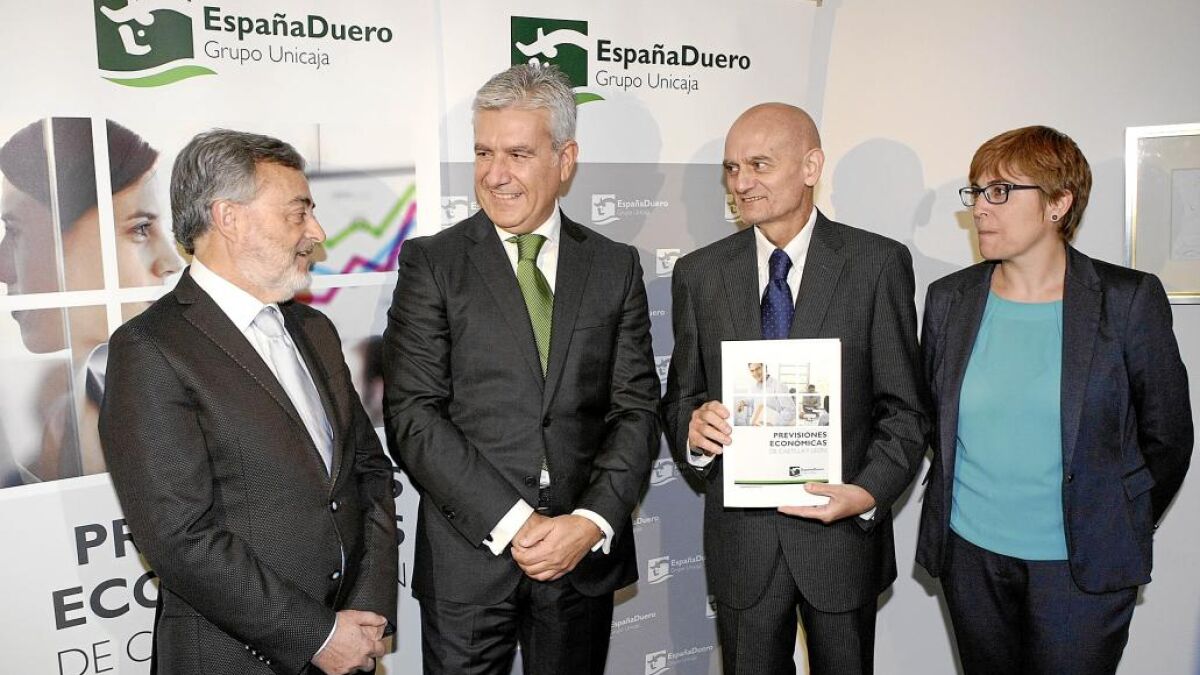 EspañaDuero revisa al alza la previsión de crecimiento de Castilla y León hasta el 3 por ciento. Así lo muestra el tercer número del informe sobre «Previsiones económicas de Castilla y León», que la entidad financiera presentó en Zamora, indican que el empleo crecerá un 2 por ciento el próximo año, una décima menos que en este ejercicio, frente al incremento nacional del 2,8 por ciento.