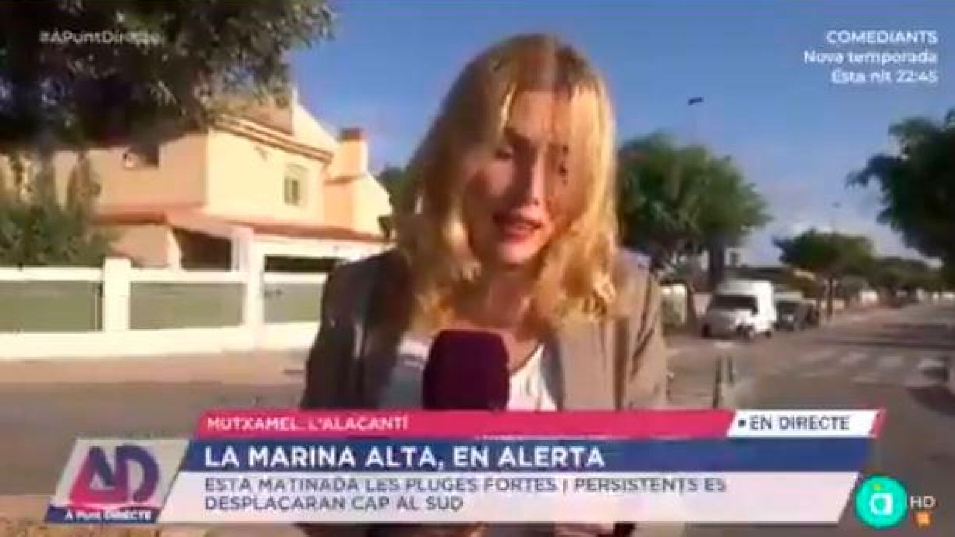 Los inherentes nervios del directo, una información recién llegada y una palabra difícil fueron los ingredientes que crearon el cóctel «Collons». Álex Blanquer, reportera de À Punt Directe (televisión autonómica valenciana) se encontraba informando el miércoles en el municipio alicantino de Muchamiel sobre el temporal en la zona de la Marina Alta. Todo iba bien hasta que la periodista tuvo que explicar cuánto había llovido en L’Alcalalí, una localidad cercana. El trabalenguas toponímico hizo el resto. Cuatro veces lo repitió sin éxito hasta que, con naturalidad valenciana, se le escapó un «Collons!», -«cojones» en castellano-.