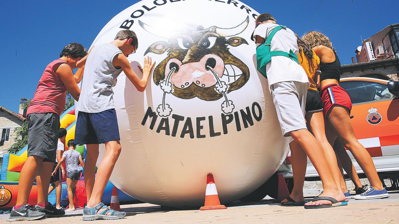 «Boloencierro». El Ayuntamiento de Mataelpino ha creado una esfera más ligera: pasa de pesar 200 kilos a 30. A sus creadores no les gusta que se hayan apropiado de su idea: «Nos han engañado»