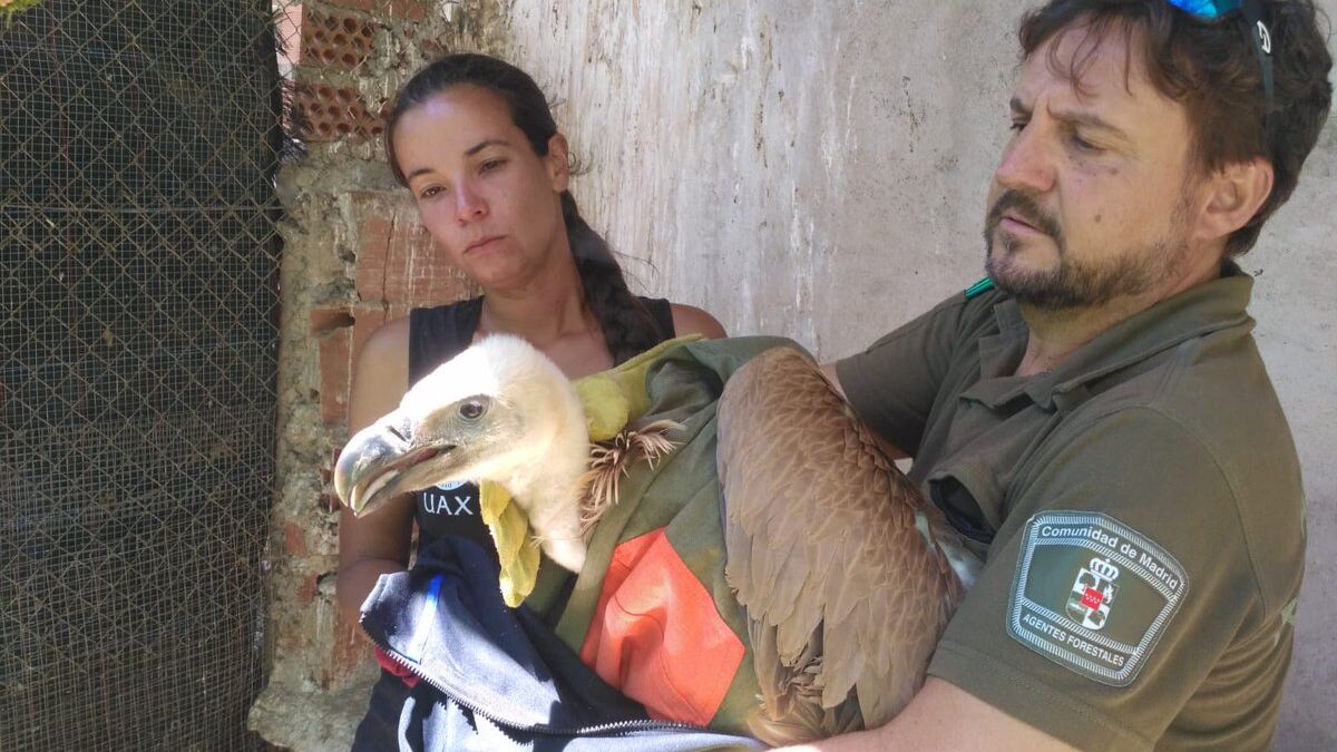 Agentes forestales de la Comunidad de Madrid han rescatado a un ejemplar de buitre leonado joven en las inmediaciones de la M-501 cuando intentaba volar y no podía al estar aprendiendo a volar