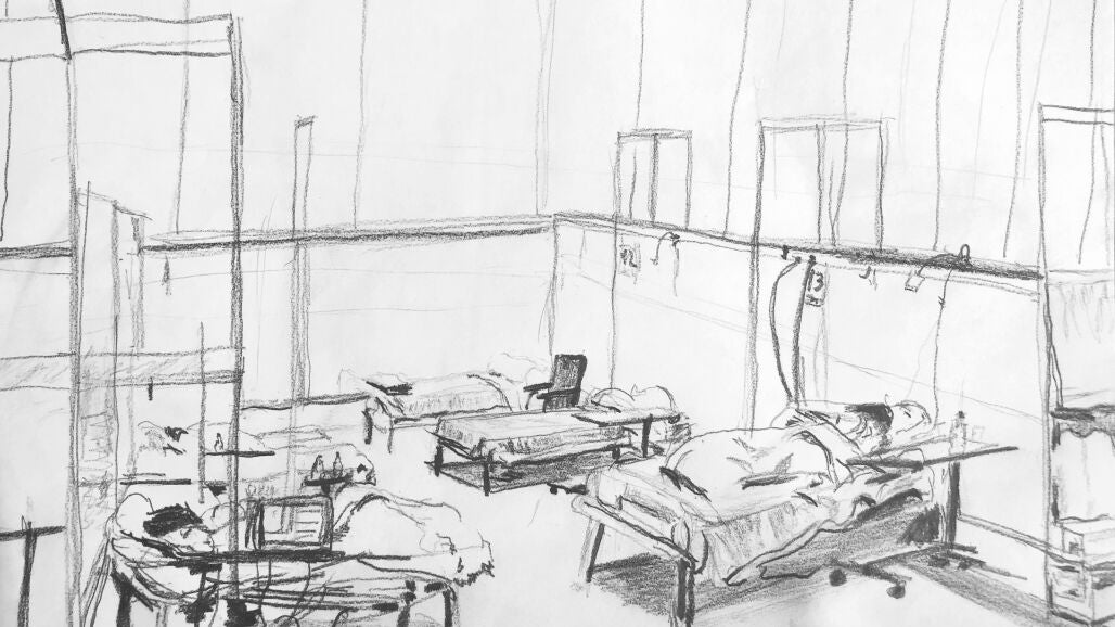 Es enfermero de noche en Ifema desde el primer día que se puso en marcha ese hospital que ha maravillado a la OMS. En una ocasión le asignaron un control en el que todo el trabajo estaba repartido, así que cogió un bolígrafo y un papel en blanco de la fotocopiadora y se puso a dibujar a los pacientes yacentes en sus camas mientras libraban entre sueños la lenta batalla de fondo contra el virus. «Están quietos y son los mejores modelos», dice.