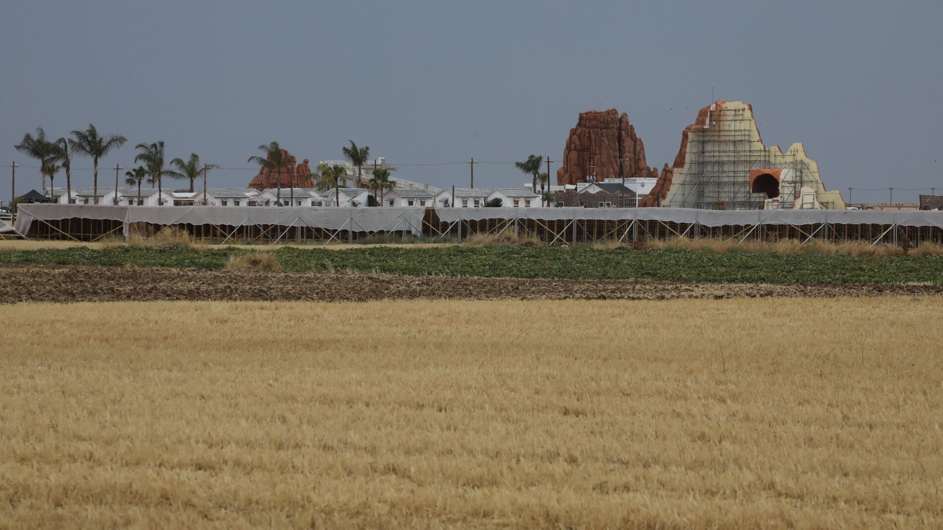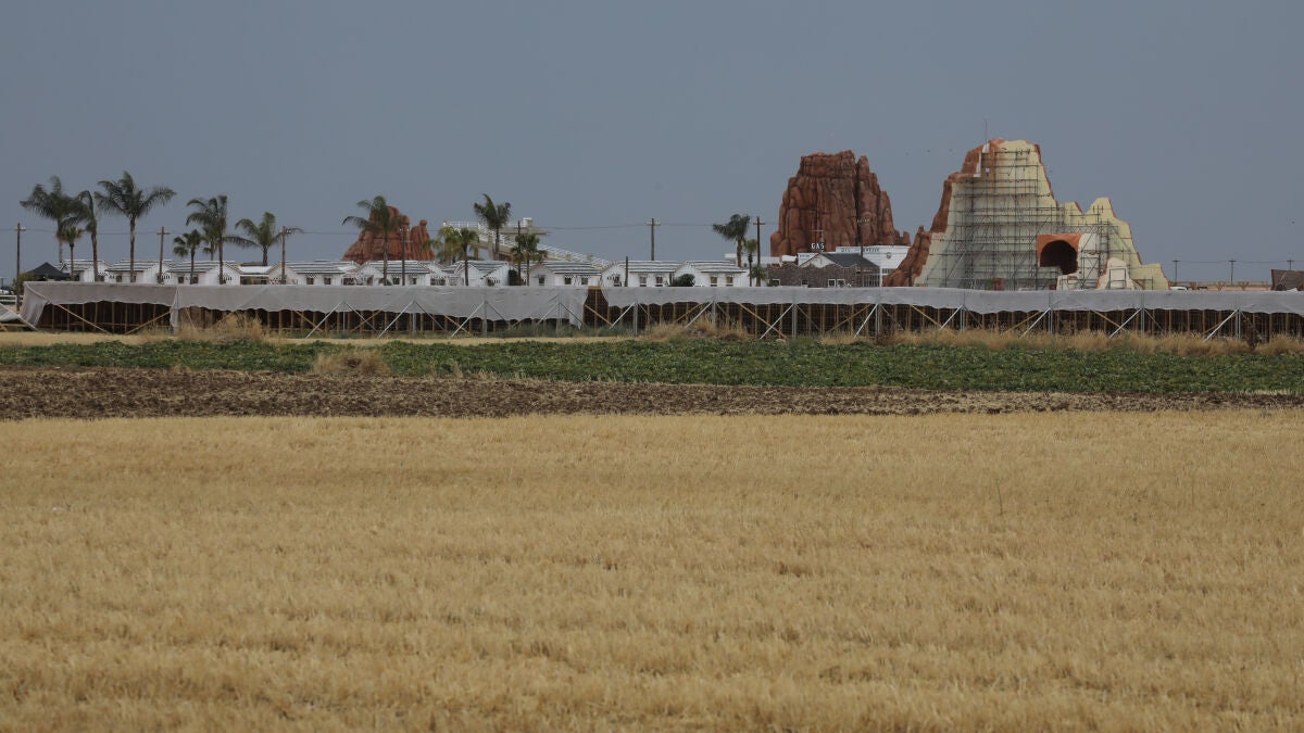 La última semana de octubre fue la despedida de todo el equipo técnico y artístico, y solo permanece, pendiente del desmontaje definitivo que llevará por lo menos un mes, el llamativo decorado a un costado de la carretera a Colmenar de Oreja. Para llegar hasta allí hay que enfilar un camino embarrado por las últimas lluvias que conduce a una caseta de vigilancia donde se corta el paso a quien no tiene autorización. Es la única huella visible de un rodaje por el que desfilaban los participantes, se iban y regresaban tiempo después, si así lo estipulaba el plan de producción.