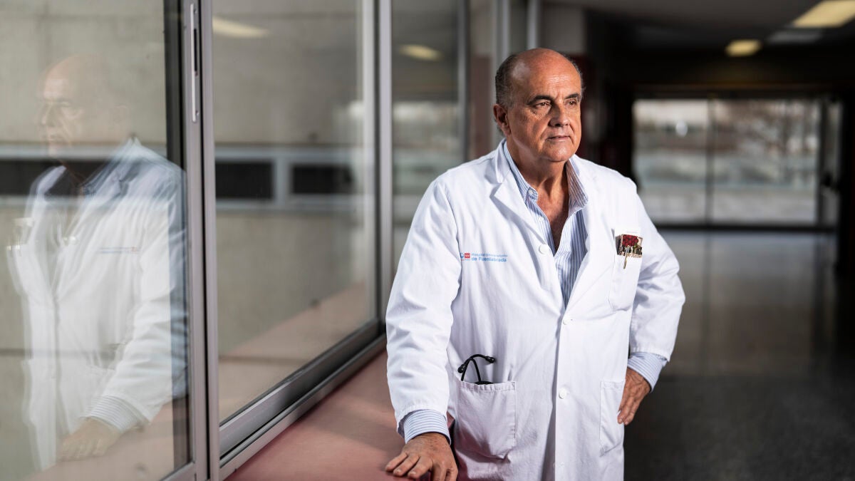 Empecé aquí la pandemia [en el Hospital de Fuenlabrada]. Soy médico asistencial puro, más de 40 años. Merece la pena decir alguna cosa respecto al inicio. En febrero de 2020, dos médicos de urgencias tuvieron un cuadro gripal muy llamativo. Ya se podían hacer test serológicos y se pudo confirmar que el virus ya circulaba por aquí. En Madrid, probablemente, los casos empezaron a finales de diciembre, principios de enero. Autores chinos publicaron los primeros estudios en revistas de impacto. Y lo que llamó la atención, y nos empezó a preocupar mucho, fueron las imágenes de Lombardía. Nos preocupó, además, que la sociedad italiana de intensivos y anestesia estableció ya una clasificación de pacientes que podrían beneficiarse o no de un ingreso en UCI, porque la mortalidad se concentraba en personas mayores. En aquellas semanas de febrero teníamos un residente del Hospital de Valdemoro que estaba rotando. Hay que recordar que el virus entró fundamentalmente por el corredor del Henares y luego también por el sur. A través del iPhone, este residente nos mostró unas neumonías bilaterales de los dos pulmones que se habían registrado en el hospital. Y Valdemoro está en línea recta, a 20 kilómetros. Nos dimos cuenta de que se iba a producir lo que se produjo, y que no nos cogía en las mejores condiciones, porque faltaban material de protección, respiradores... muchas cosas que el Gobierno de la nación no había sabido prever desde que la OMS declaró la alerta.