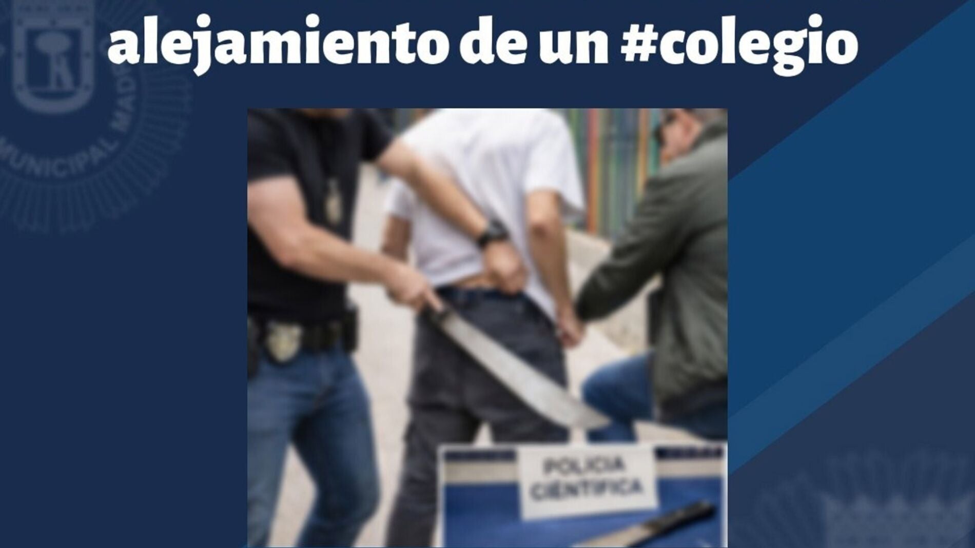 La Policía Municipal de Madrid ha detenido a un joven de 22 años como presunto autor de un delito de quebrantamiento de medida de alejamiento y tenencia ilícita de arma blanca tras ser sorprendido portando un machete de grandes dimensiones en una zona del distrito de Puente de Vallecas a la que tenía prohibido acercarse.