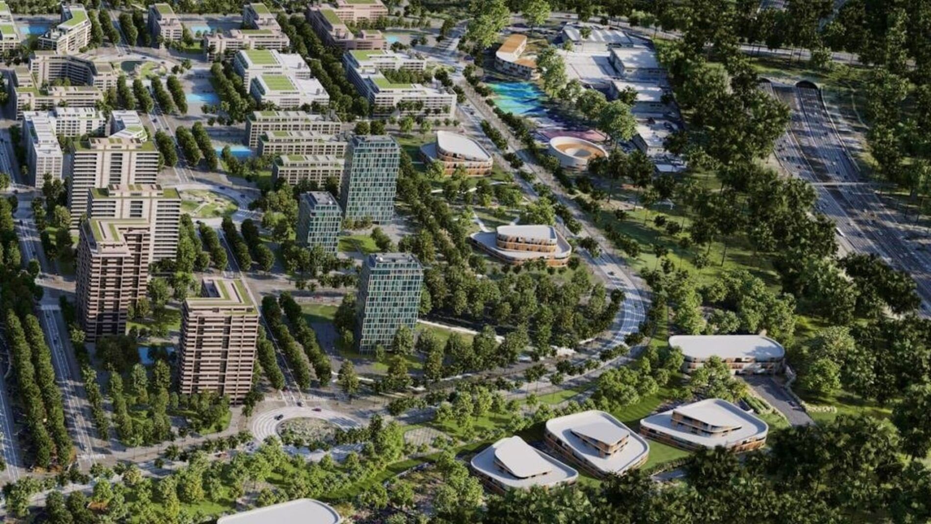 Con tan solo un 12% de superficie edificable, Los Cerros apuesta por "un modelo urbano singular donde naturaleza y ciudad se integran armónicamente, con 550.650 metros cuadrados destinados a usos terciarios y comerciales".
