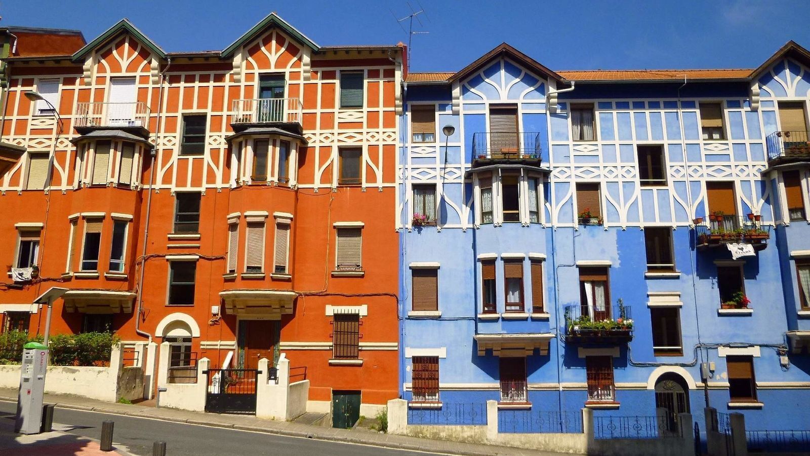 Las casas adosadas de las calles Kirikiño, Baiona y Zuberoa —con fachadas de colores, tejados inclinados y pequeños patios— son hoy la imagen más reconocible del barrio. Su estética recuerda a zonas residenciales inglesas y contrasta con el ladrillo y la verticalidad del Bilbao tradicional.