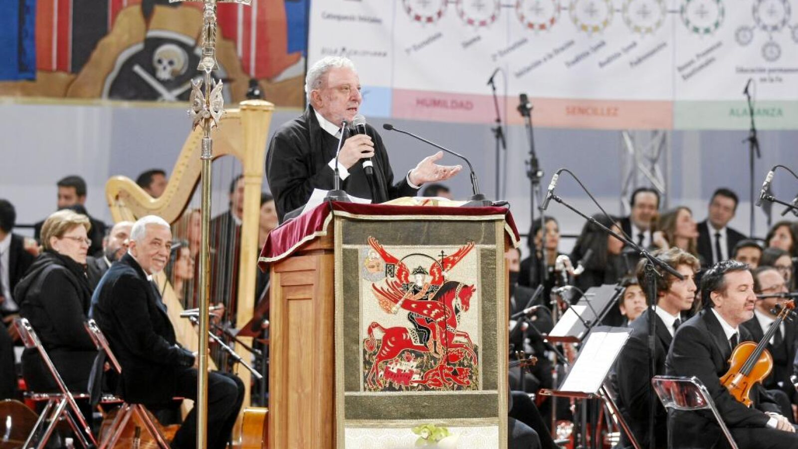 El colofón lo puso la Orquesta y Coro del Camino, formada por 200 músicos, que interpretó «El Sufrimiento de los Inocentes» en homenaje a todos los inocentes del mundo. Una obra que traslada al espectador hasta el momento en el que la Virgen observa cómo su Hijo es crucificado. «Vemos a la Virgen María sometida al escándalo del sufrimiento de los inocentes en su carne y en la de su Hijo. ¡Ay, qué dolor!, canta una voz mientras una espada atraviesa su alma», explicó Argüello.