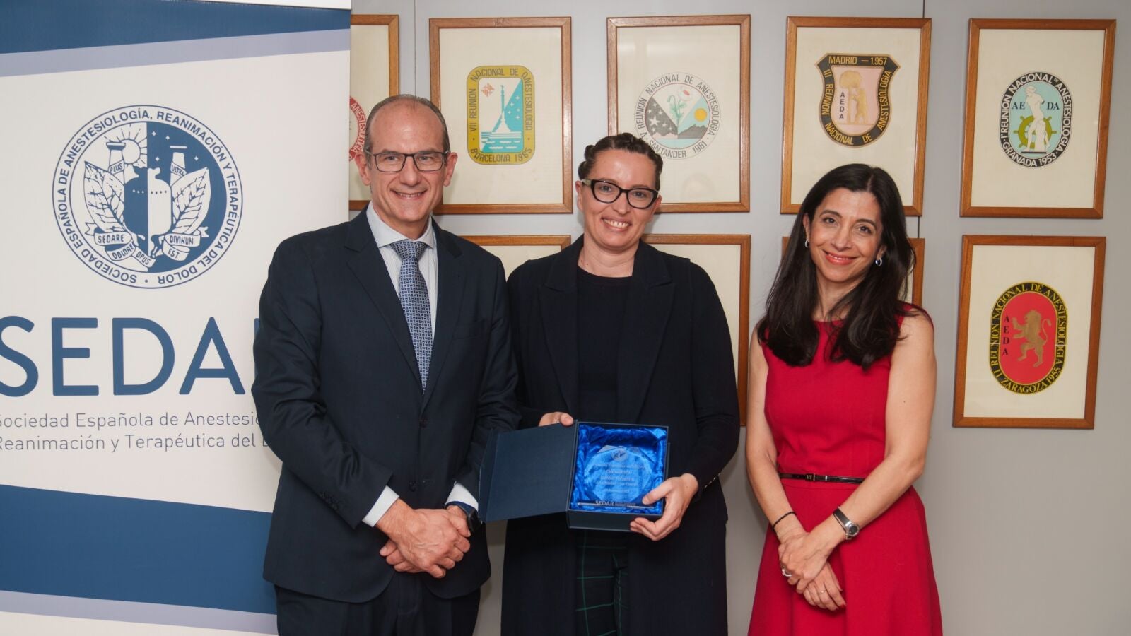 Le hizo entrega del galardón la doctora Marina Varela, secretaria general de Sedar, quien hizo hincapié en que "la Anestesiología es una de las especialidades más importantes y, sin embargo, una gran desconocida. Estamos luchando por un quinto año de formación y os pedimos que nos ayudéis".