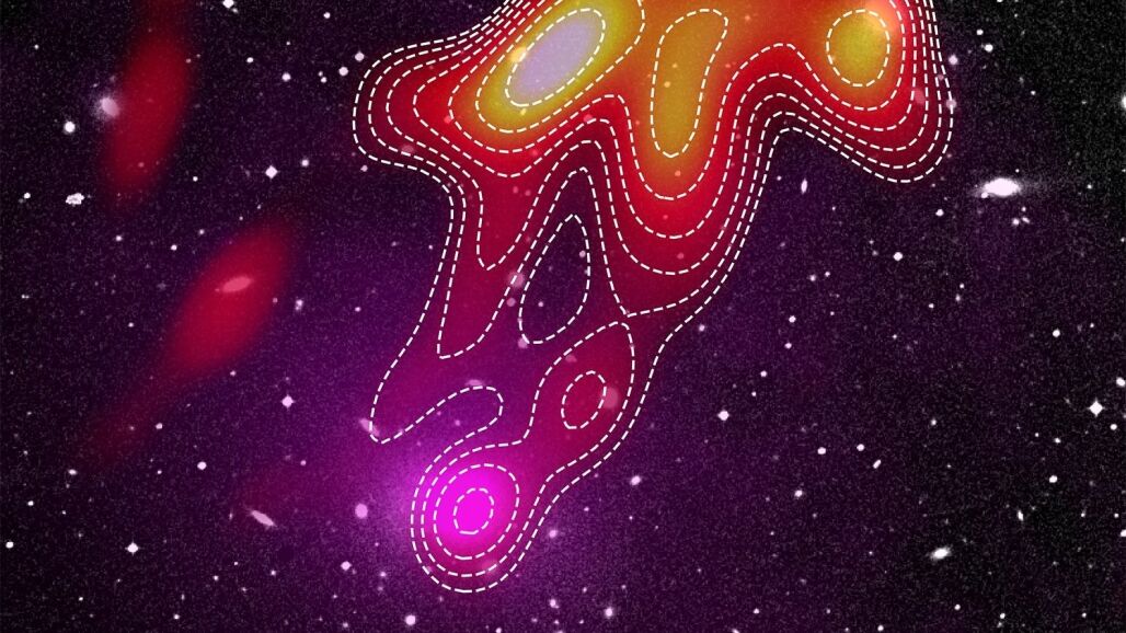 Hay una medusa descomunal flotando en el espacio. Su gelatinoso cuerpo está, en realidad, hecho de plasma y aunque se desplaza no lo hace por voluntad propia. No hay nada en ella que anime sus tentáculos o su umbrela, solo se deja llevar a través del cosmos como hace el plancton empujado por las corrientes marinas. Su cuerpo emite ondas electromagnéticas en una frecuencia parecida a la que usa la radio FM y alcanza una envergadura de 370 kiloparsecs, lo que se traduce en 11.420.000.000.000.000.000 kilómetros (once trillones cuatrocientos veinte mil billones). Los bestiarios galácticos están plagados de poderosos agujeros negros y brillantes quásares, pero esta medusa es (por ahora) única, y despierta nuestra imaginación como ningún otro objeto astronómico.