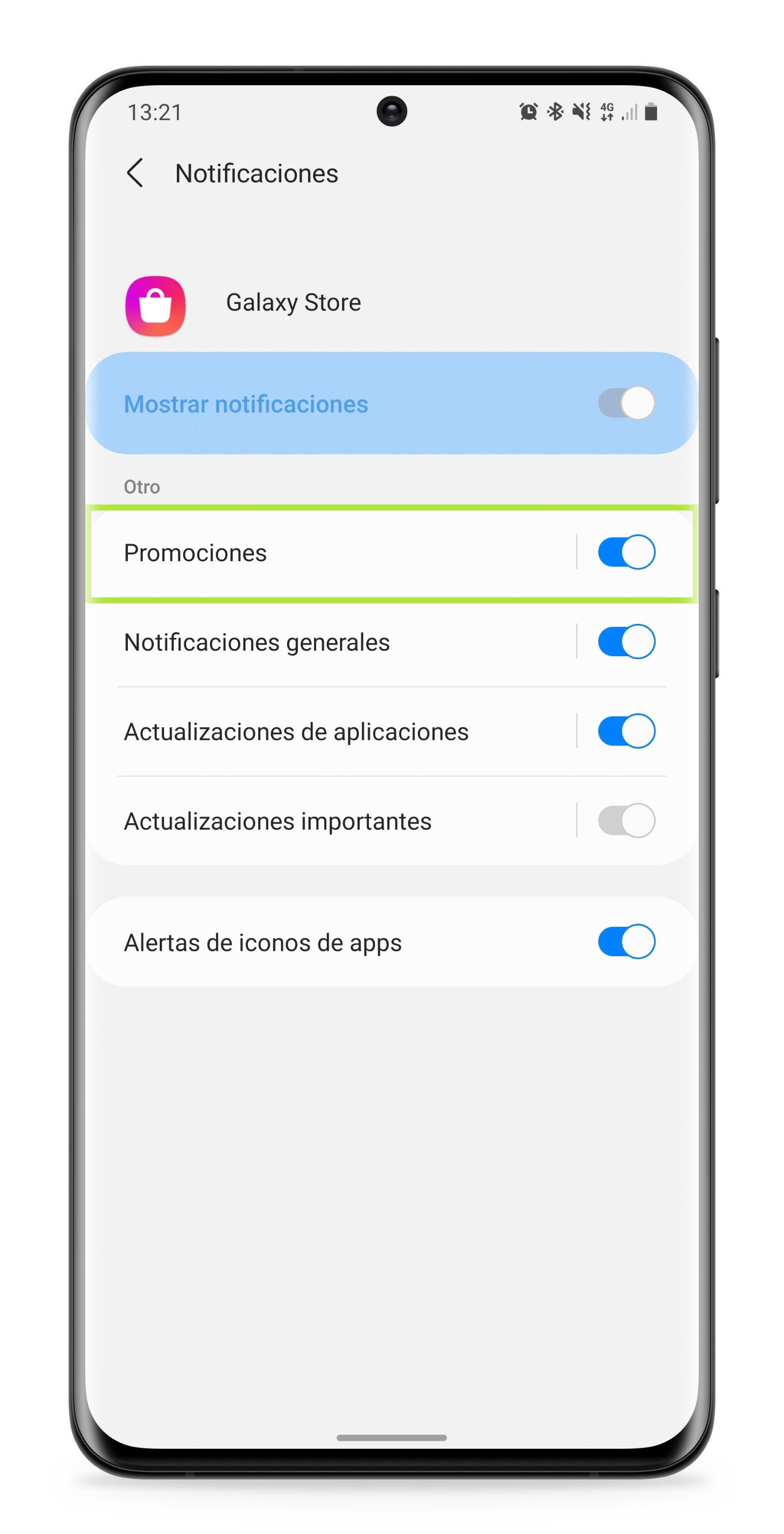 Si Samsung no te ha enviado ninguna, pero de todas formas quieres bloquearlas, sigue estos pasos para hacerlo de forma permanente: