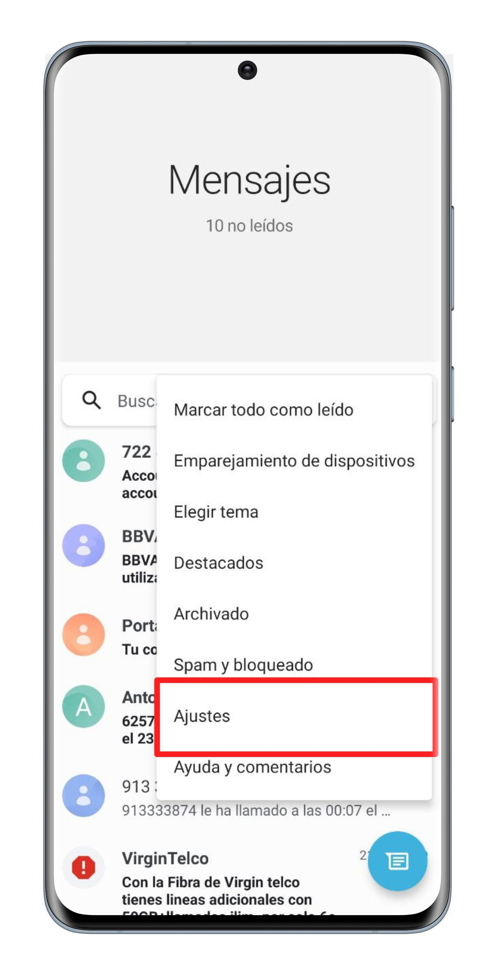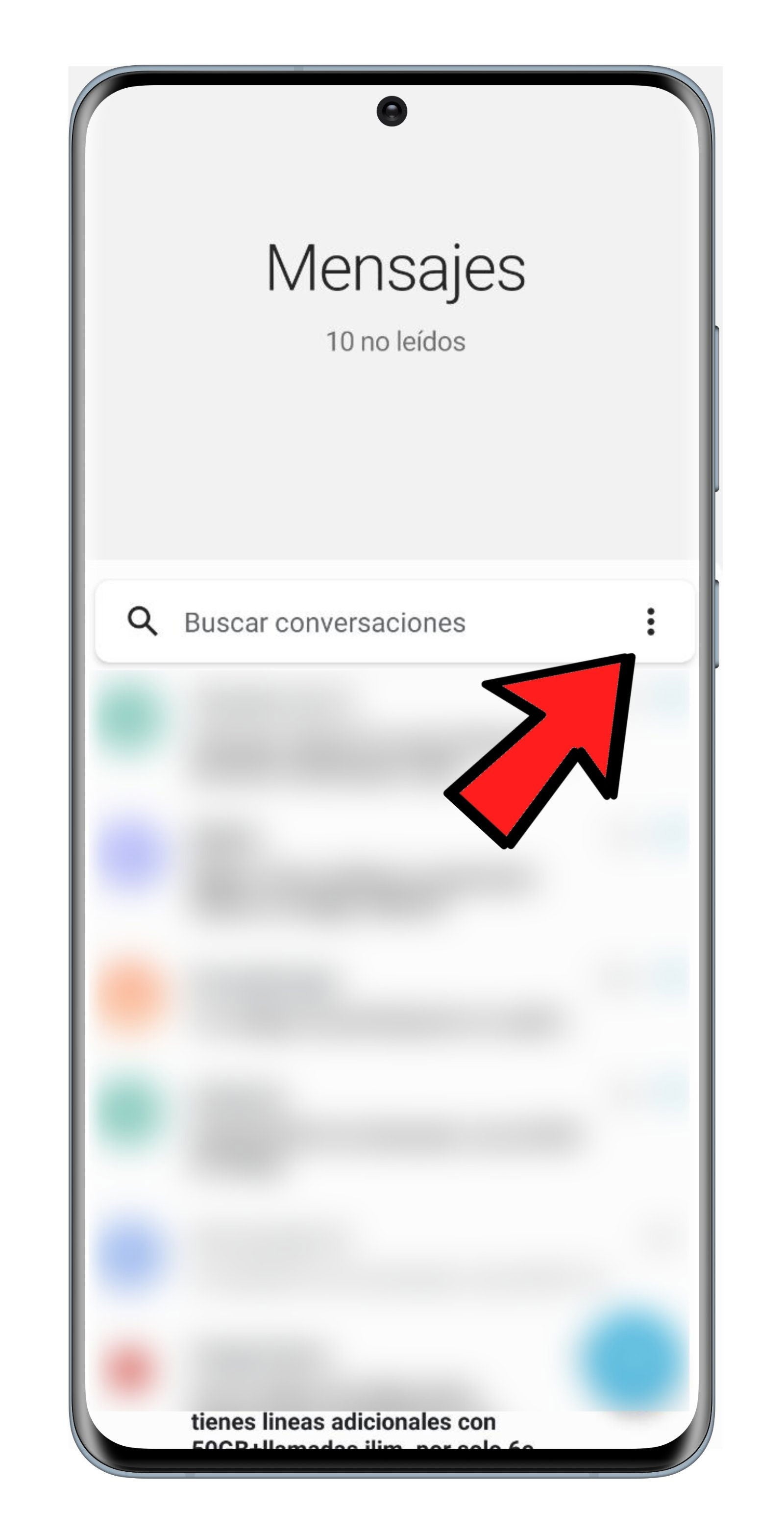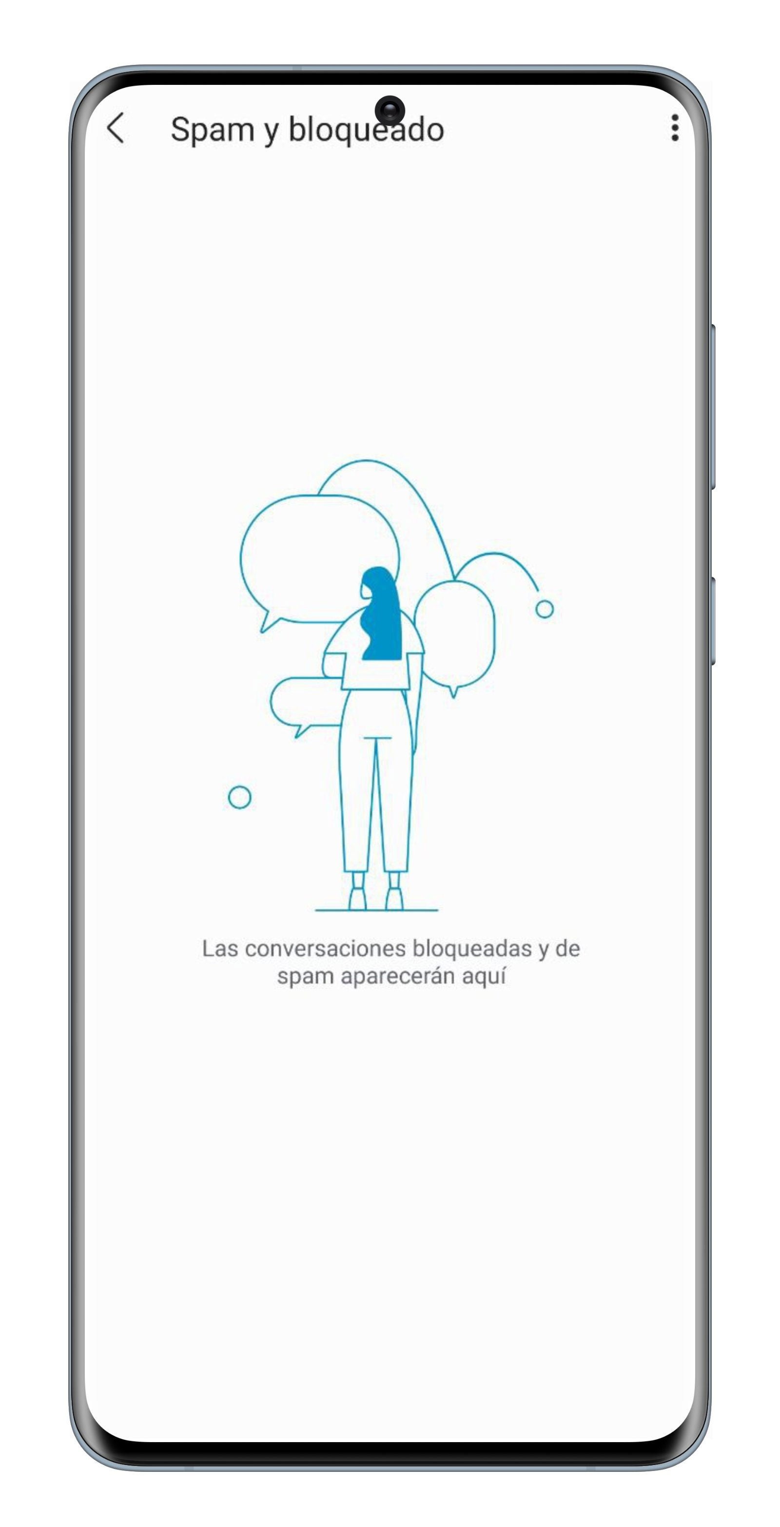 - Finalmente, en la pantalla principal, puedes volver a pinchar en el botón de tres puntos y entrar en "Spam y bloqueado" para ver qué mensajes de spam ha bloqueado automáticamente la app de mensajería.