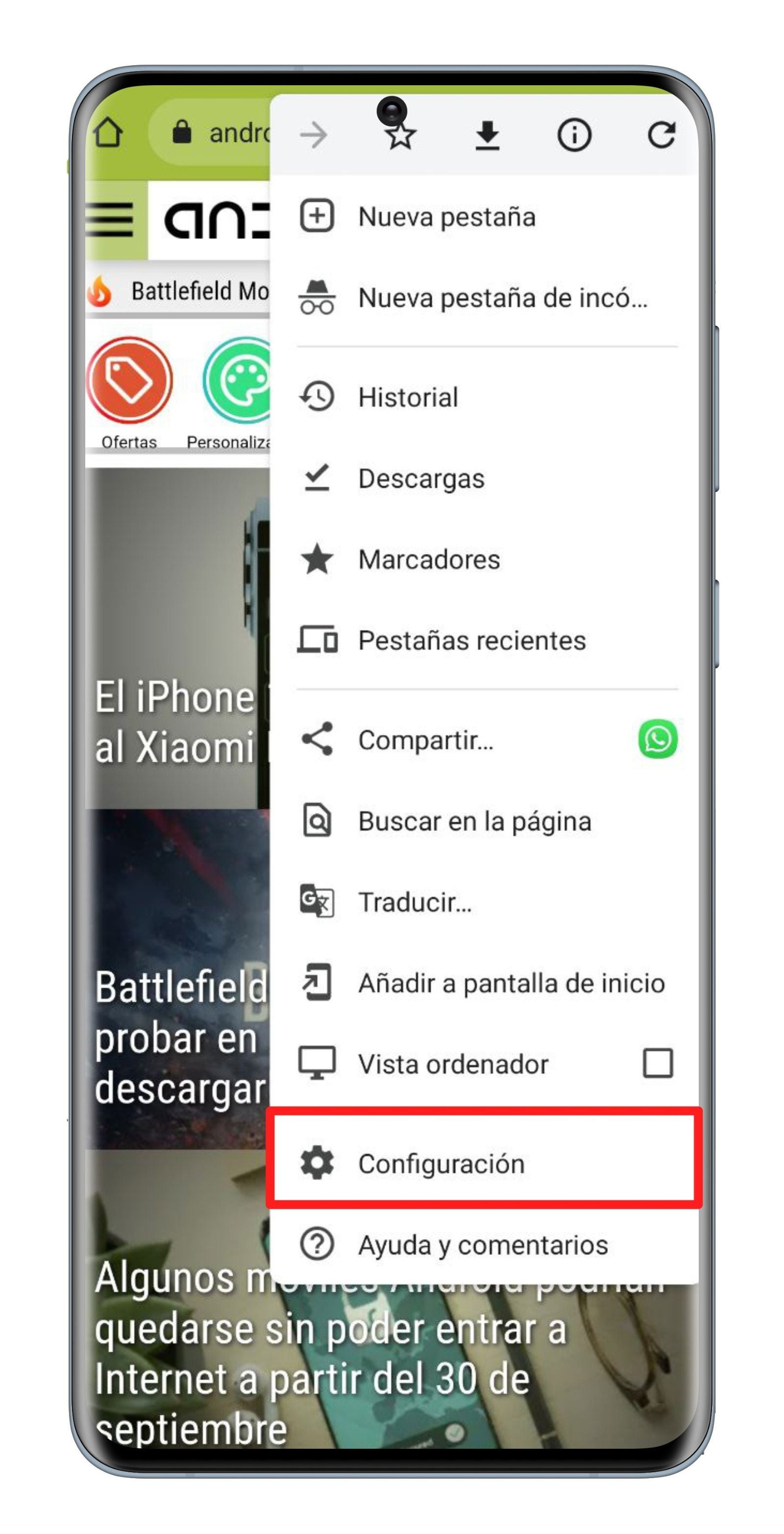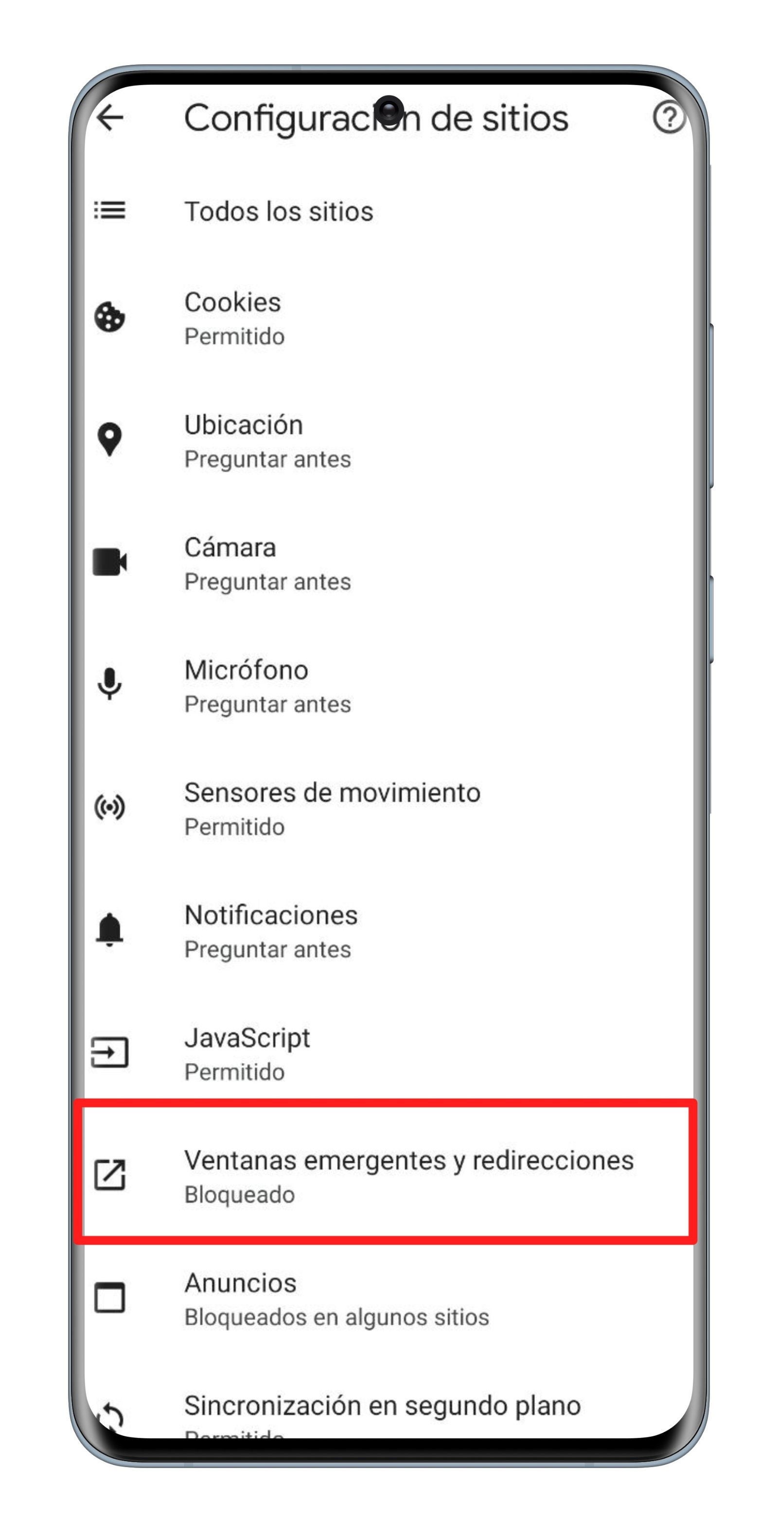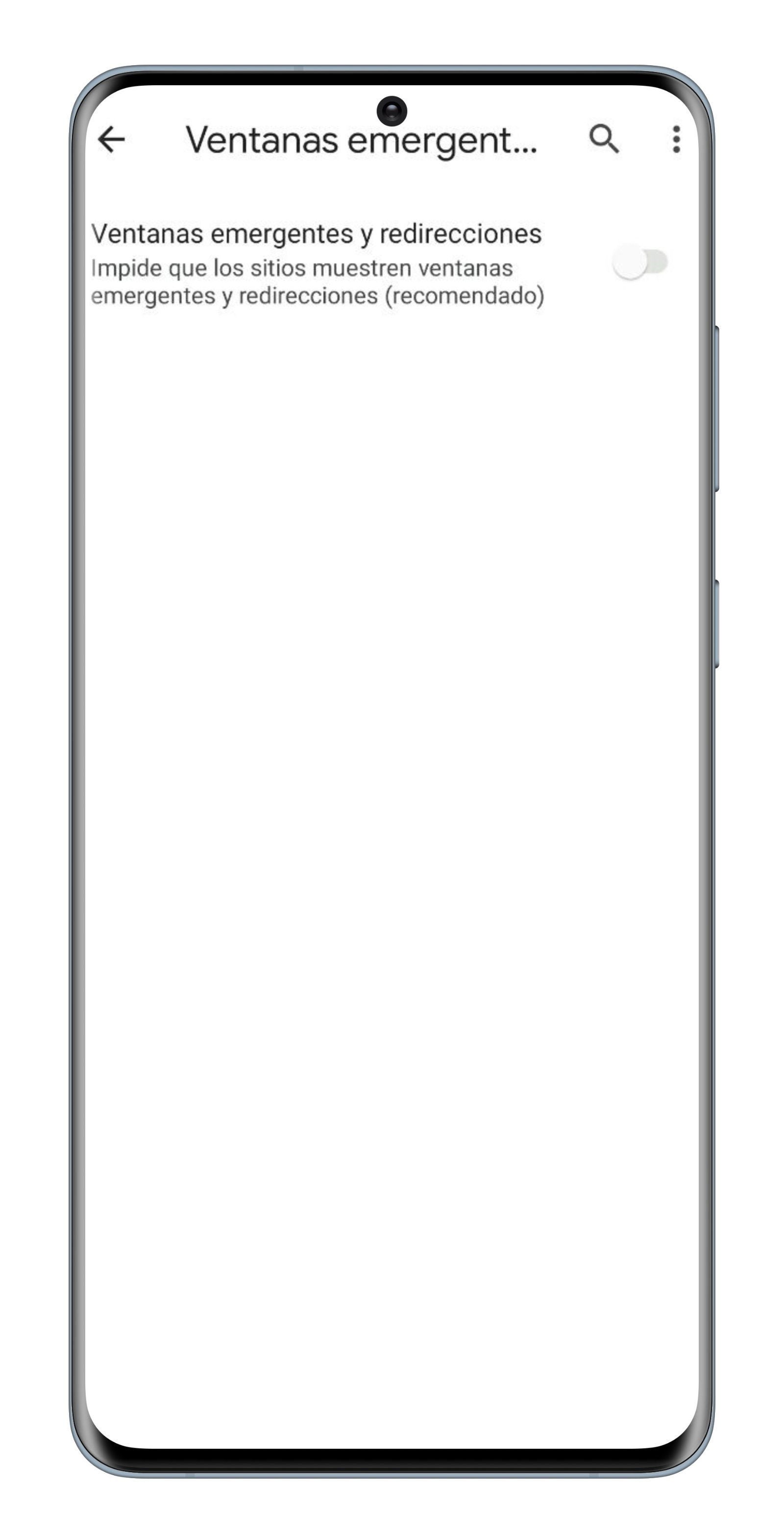 Afortunadamente, Chrome cuenta con un bloqueador automático de pop-ups. Cabe la posibilidad de que esta herramienta se haya desactivado en tu móvil, lo que provoca que esos anuncios sigan apareciendo. Puedes volver a activar el bloqueador de ventanas emergentes de Chrome, o comprobar que está activo, siguiendo este proceso: