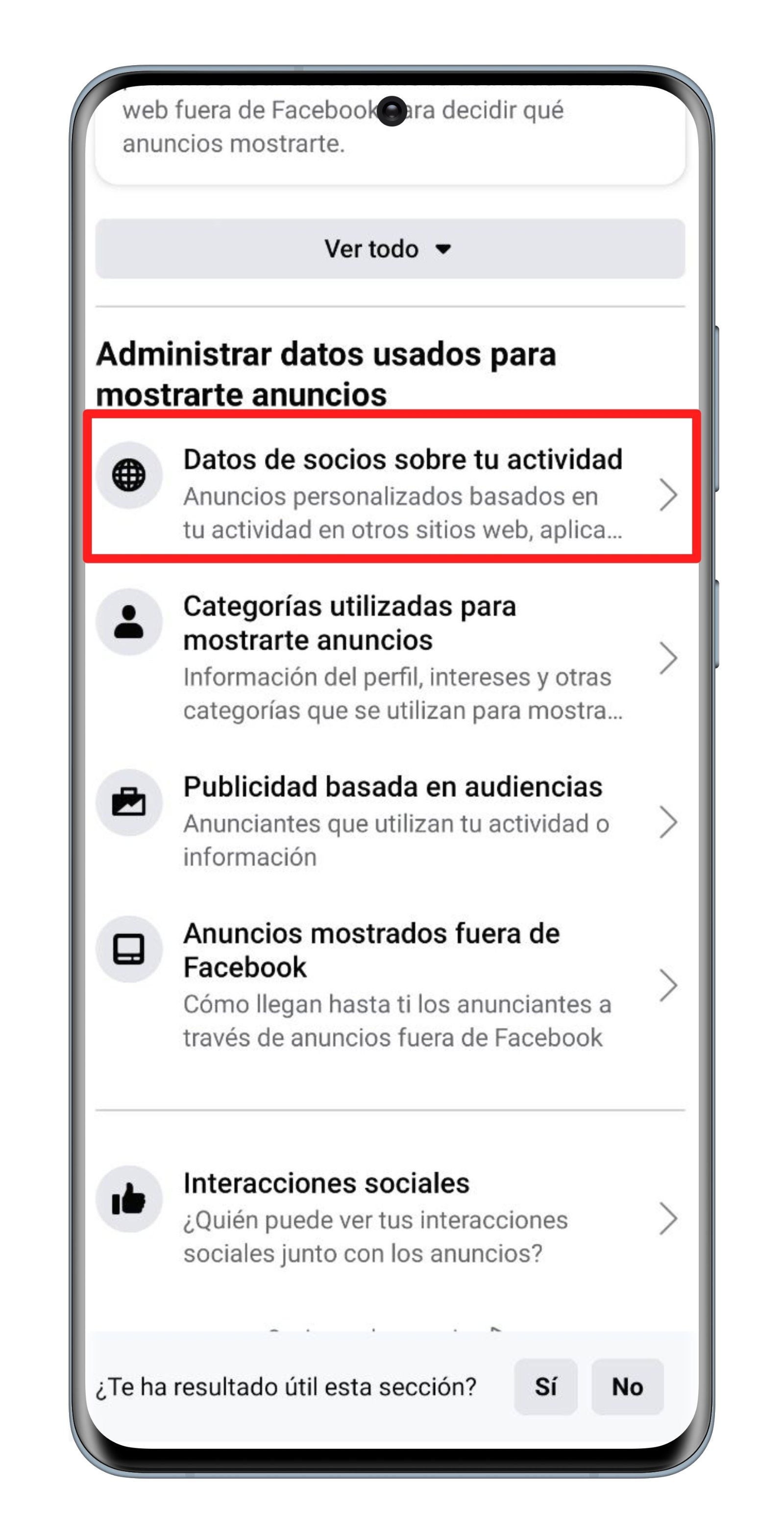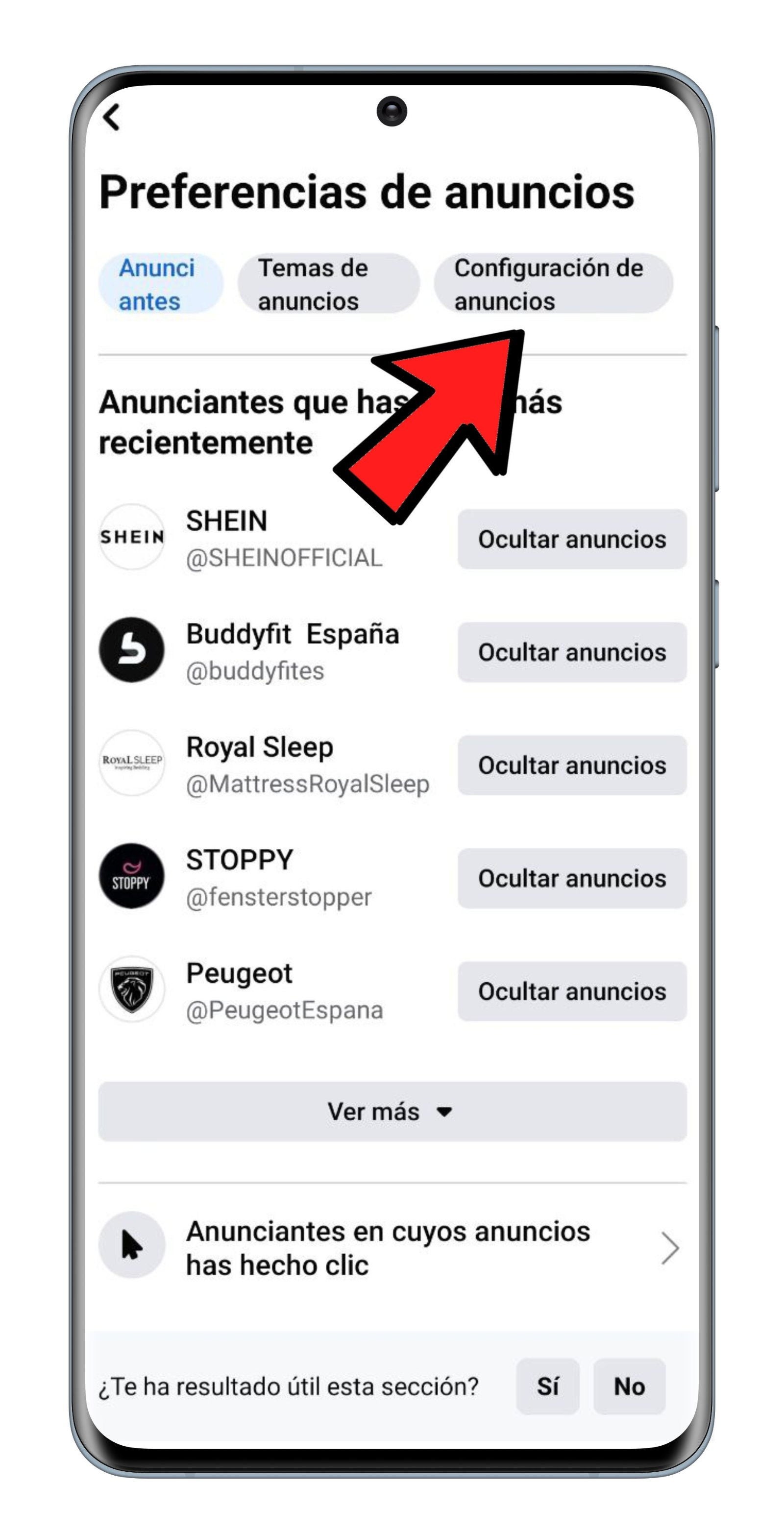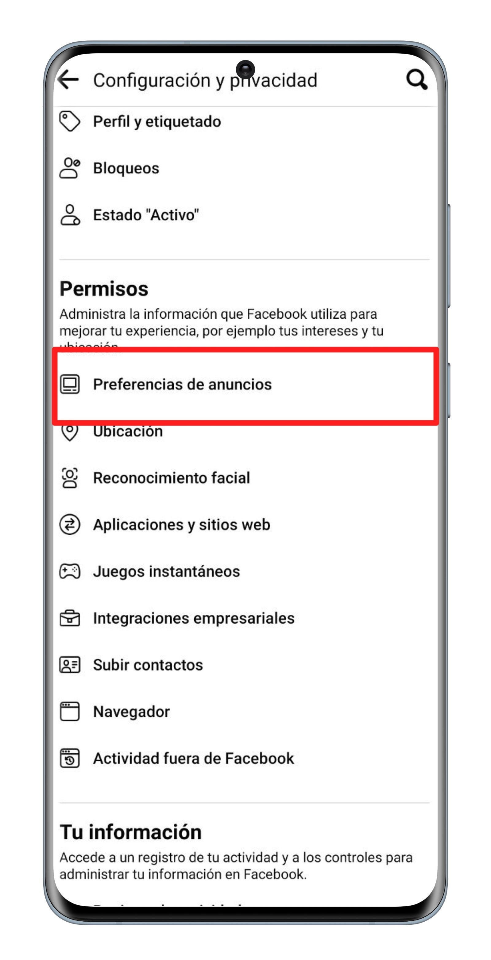 - Dentro del apartado "Permisos", accede a "Preferencias de anuncios".