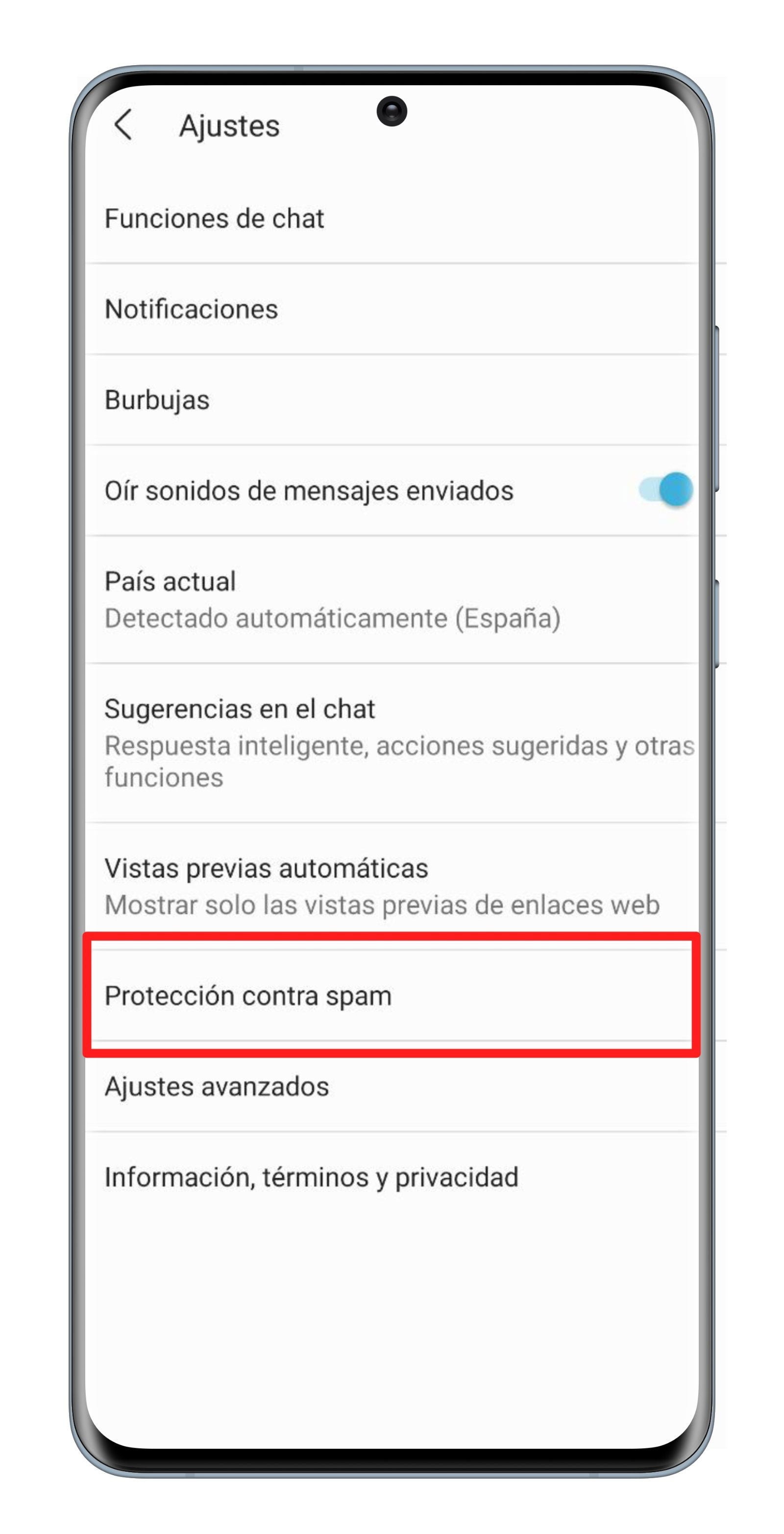 - Entra en "Ajustes" y, a continuación, en "Protección contra spam".