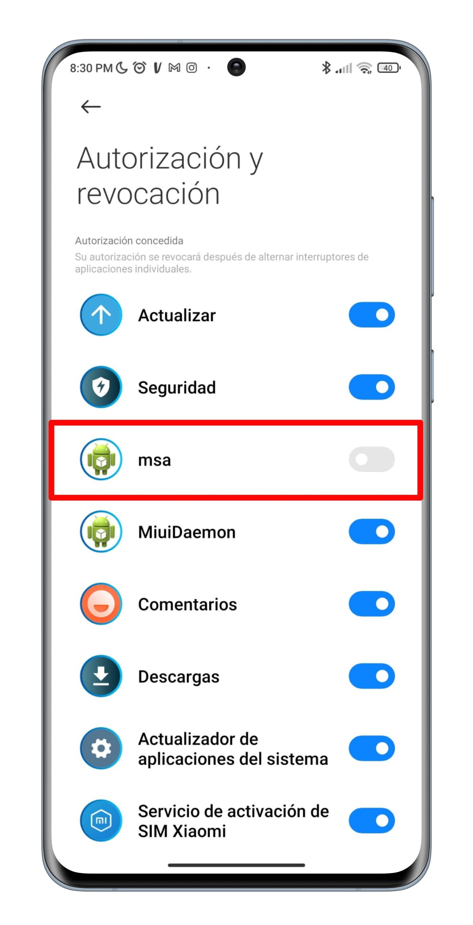 - Desactiva la casilla "msa", debes esperar unos segundos para poder pinchar en el botón "Revocar". Si el sistema te dice que no se puede hacer, vuelve a intentarlo hasta que te deje.