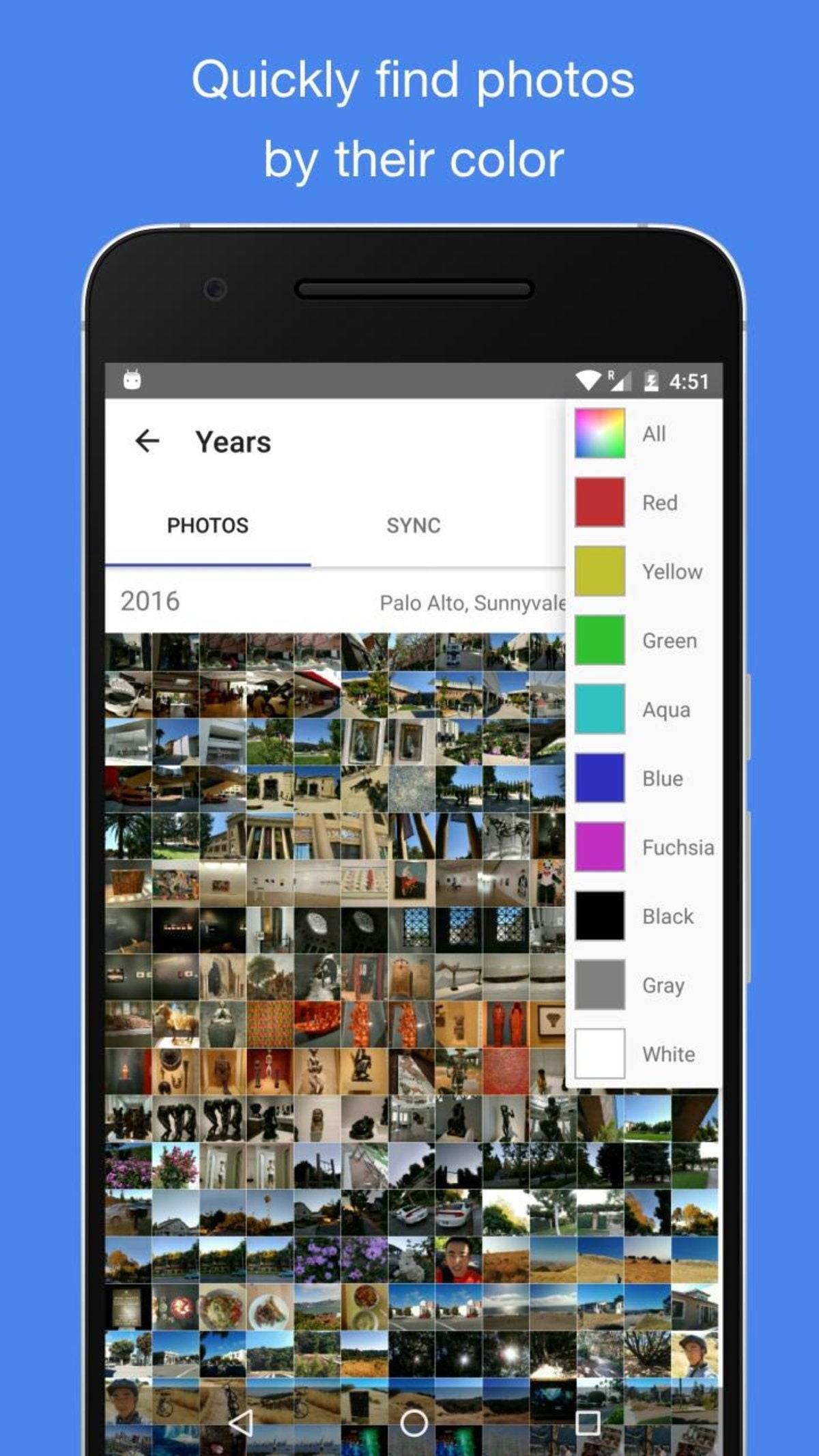 También puedes ocultar tus fotos privadas configurando una contraseña, buscar fotos por su color y acceder a todas las imágenes que tienes guardadas en servicios como Dropbox. Sin duda alguna, A+ Galería es una de las apps de galería de fotos más completas para Android.