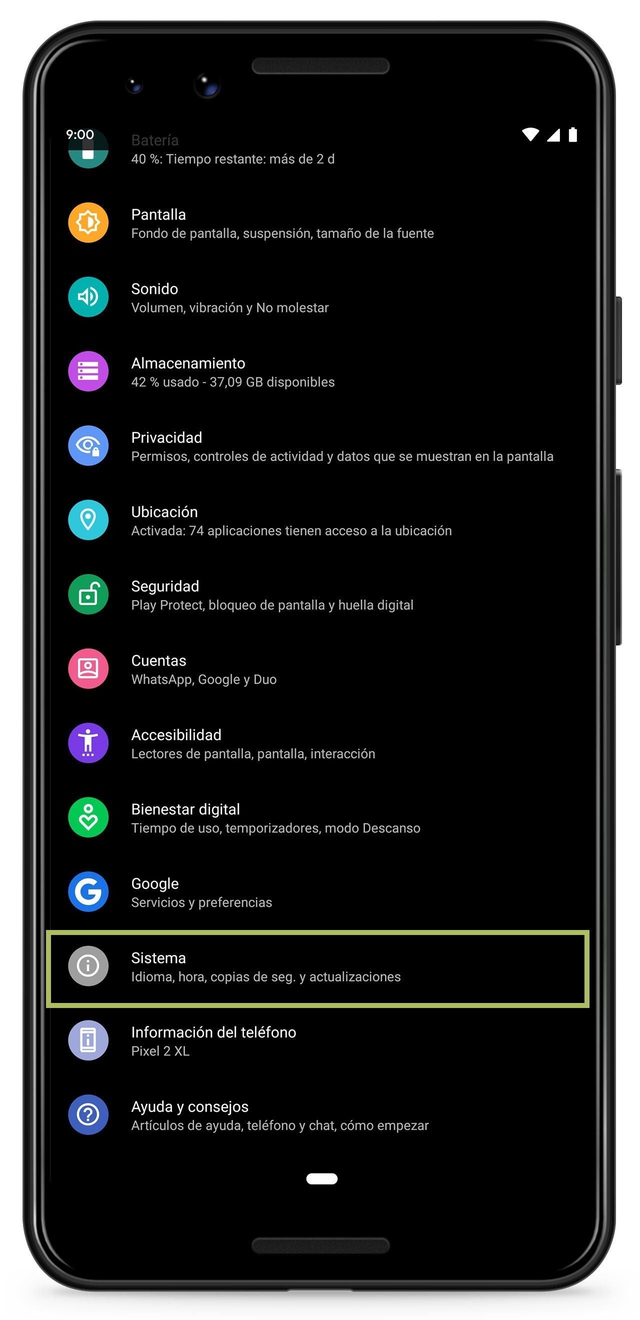 - Abrir los ajustes del sistema e ir a la sección "Sistema".