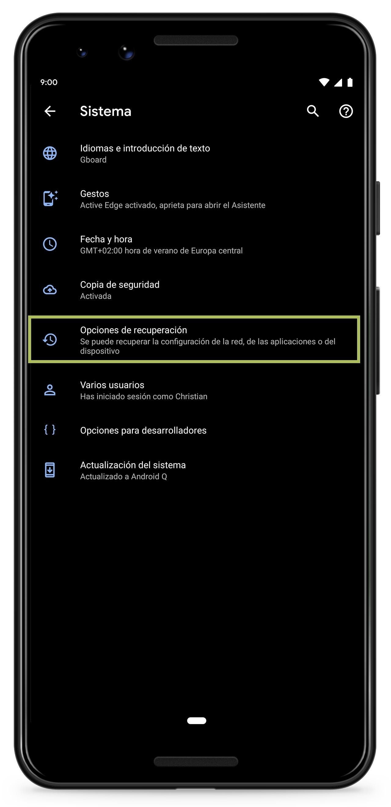 - Acceder a "Opciones de recuperación".