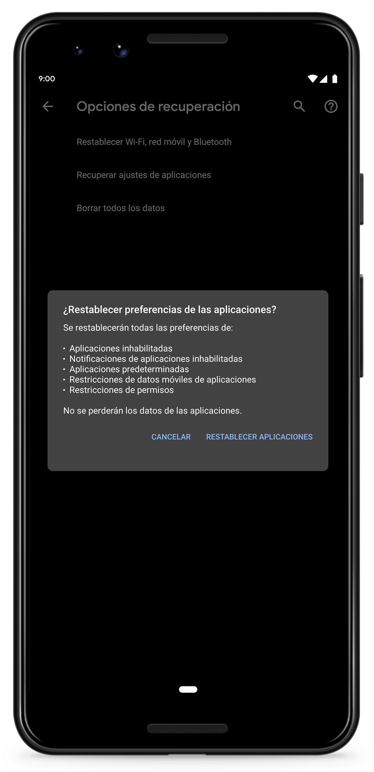 Lógicamente, este proceso no eliminará información ni datos importantes almacenados en el dispositivo, sino que únicamente restaurará los valores predeterminados de las conexiones. Pero en caso de querer llevar a cabo una limpieza aún más profunda, Android también permite recuperar los ajustes predeterminados de las aplicaciones.