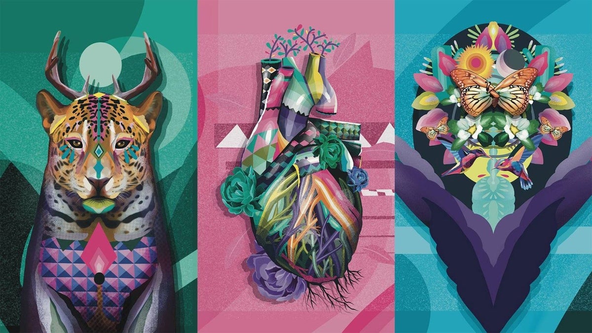 Esta colección de Wallpapers está compuesta por tres fondos de pantalla de gran colorido que cuentan con la presencia de una buena cantidad de elementos de la cultura hispana en ellos y que llevan el título de Tótem, Raíces y El árbol de la vida.