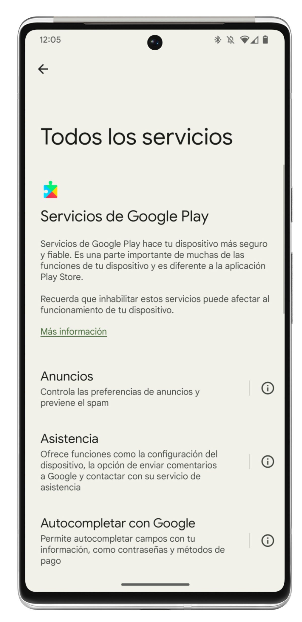 Google explica que Servicios de Google Play "es una parte importante de muchas de las funciones de tu dispositivo", y detalla que se trata de una aplicación diferente a la de Google Play Store.