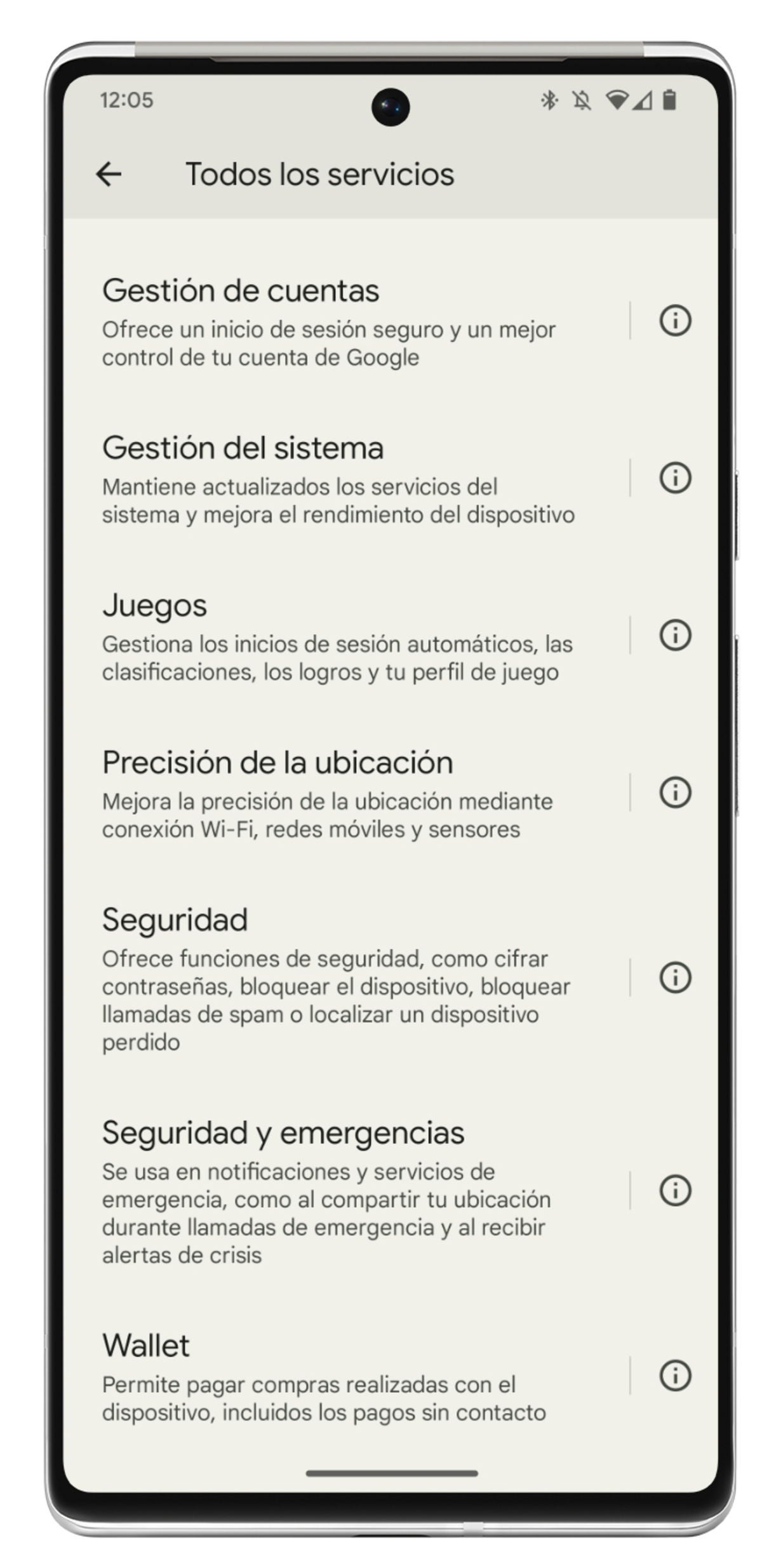 Una vez dentro, justo debajo de los botones de "Inhabilitar" y "Forzar detención", verás un nuevo apartado llamado "Todos los servicios". Si tocas sobre él, serás dirigido a una página donde se listan todos los servicios que forman Google Play Services, junto con una explicación de cada uno de ellos.