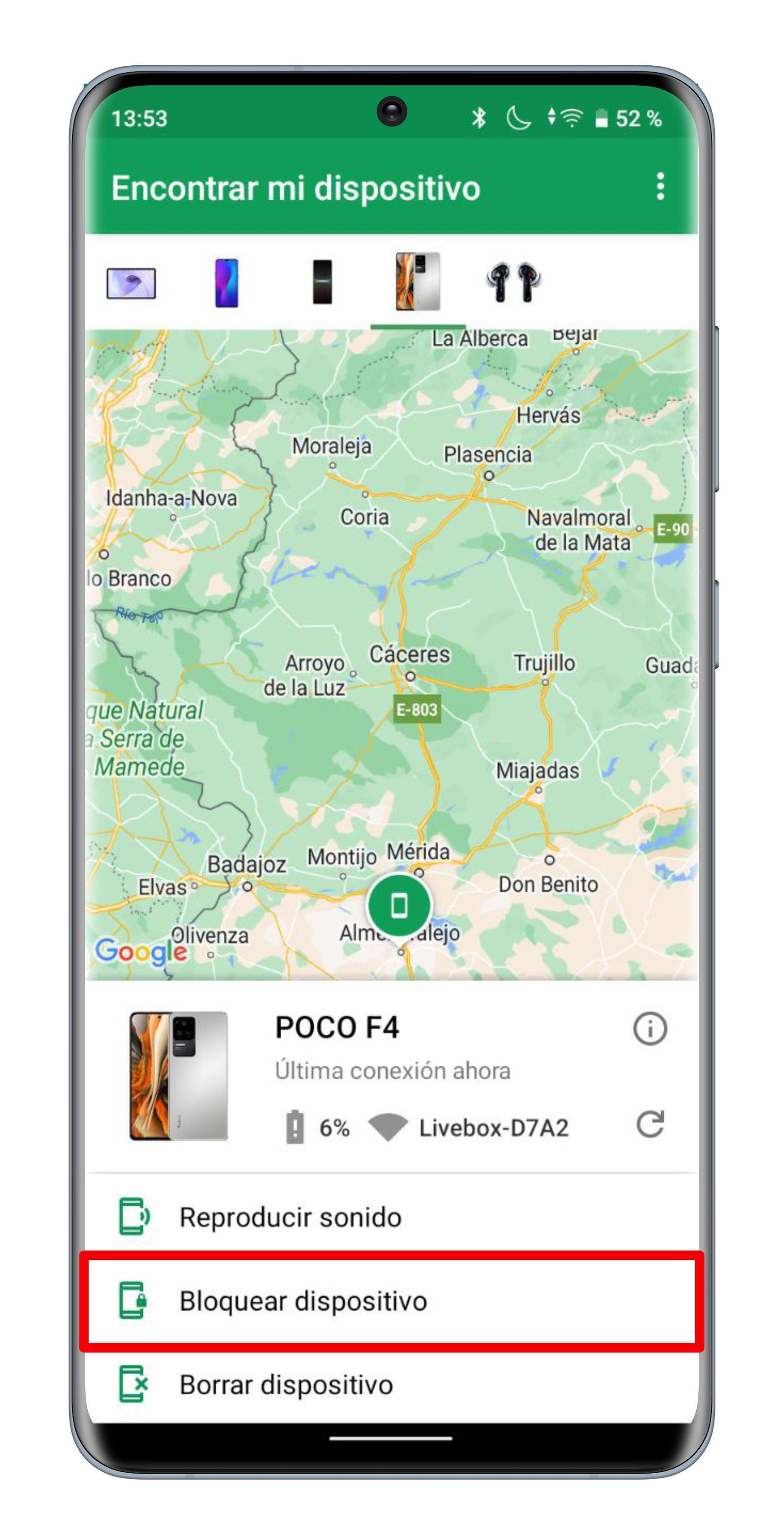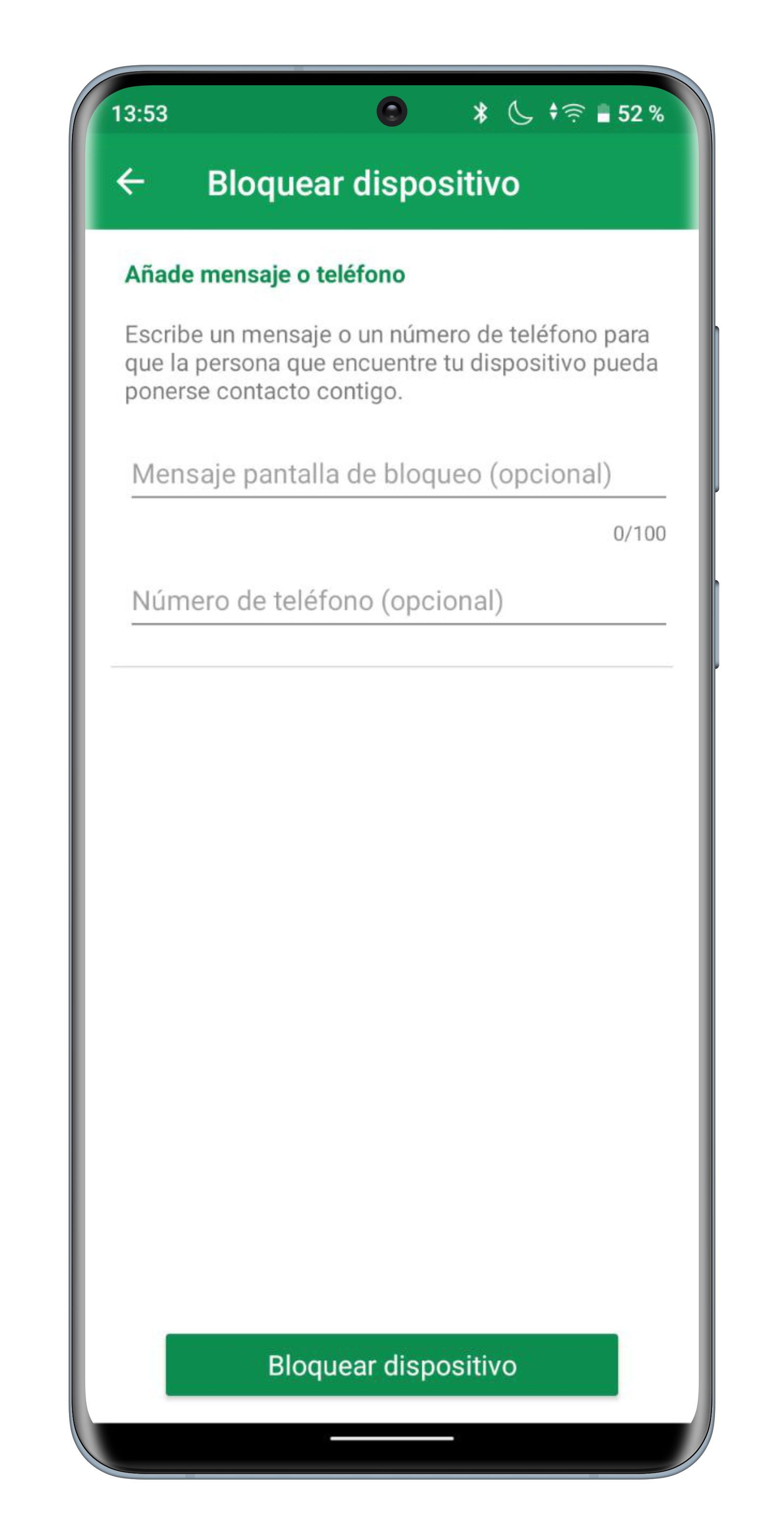 - Toca en el botón verde "Bloquear dispositivo" para confirmar tu decisión.