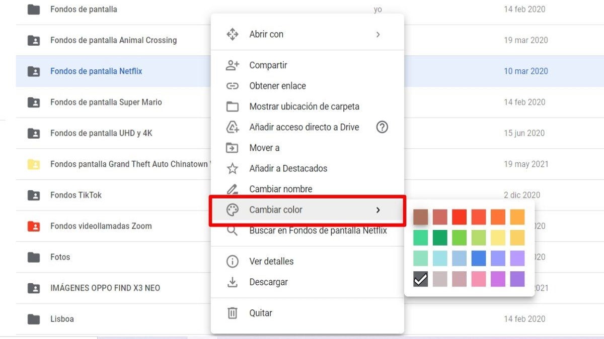 Como decimos, asignar colores a las carpetas puede ayudarte a encontrarlas mejor entre todos los archivos almacenados. Por ejemplo, si asignas el color rojo a las carpetas del trabajo y el amarillo a las personales, podrás acceder mejor a las primeras de ellas cuando necesites algo en concreto para trabajar.