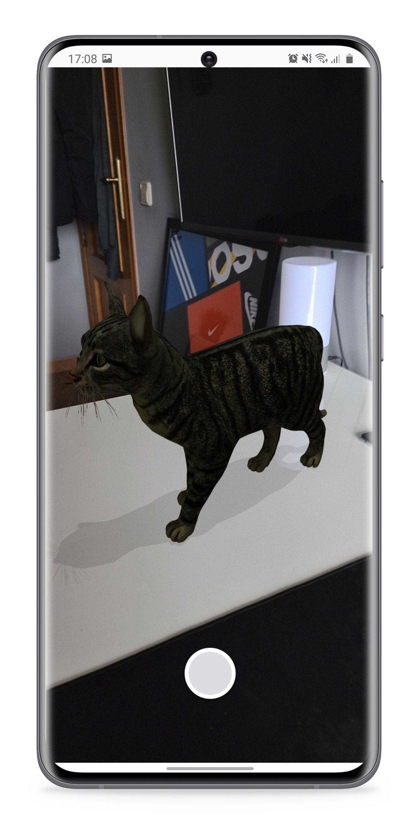 - Mueve tu móvil apuntando al suelo para permitir a la aplicación detectar la superficie en la que mostrará al animal. Una vez detectada, aparecerá el modelo 3D.
