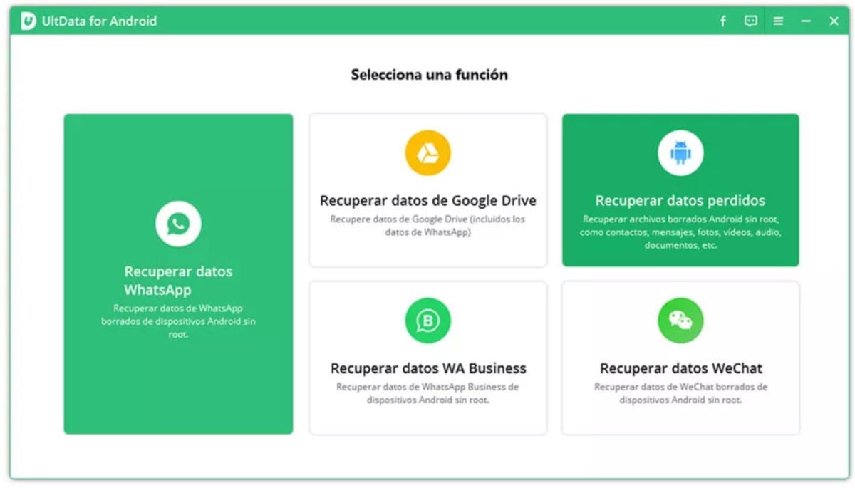 - Entra en UltData para Android y pulsa en "Recuperar datos perdidos".