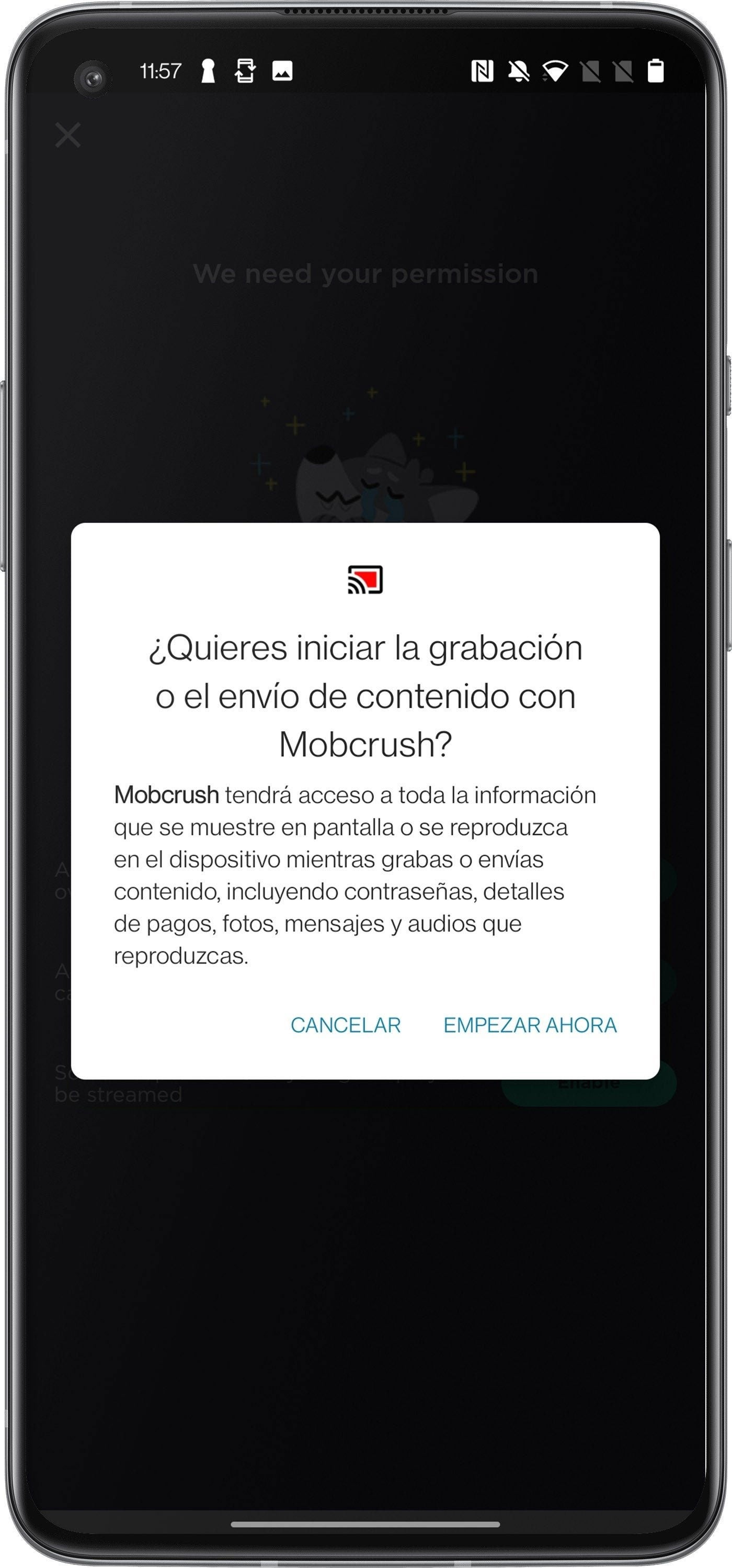Para poder funcionar, Mobcrush requiere de algunos permisos que es necesario otorgar antes de comenzar a emitir juegos en directo desde nuestro Android.