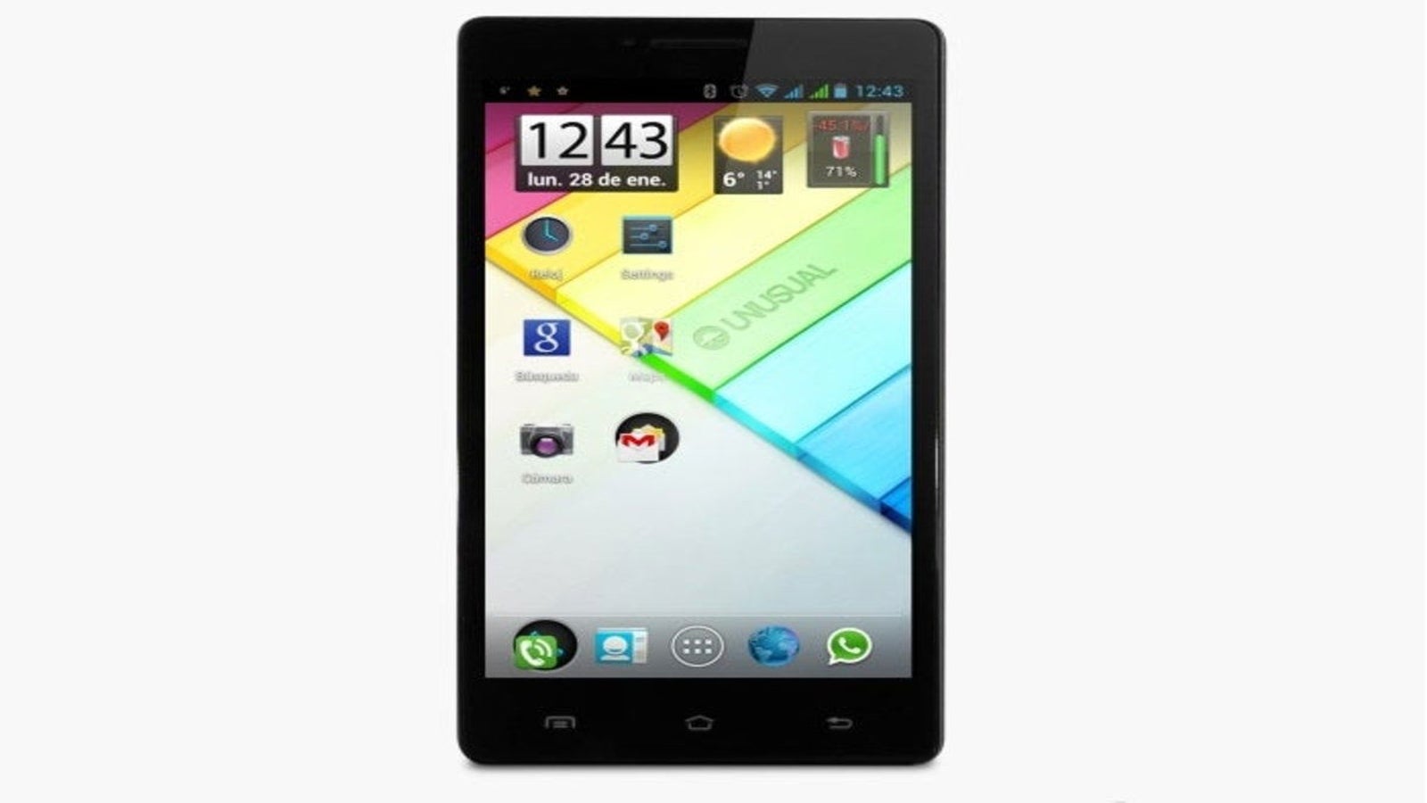 Ya ha pasado algo de tiempo desde que la marca española Unusual llegó a nuestro mercado con sus modelos de teléfonos inteligentes y tablets. Hoy, días ya de esto, nos presentan un nuevo smartphone con el que quieren sorprender a todo el mundo, el Unusual 55Y, un teléfono elegante y bonito cuya principal característica es su pantalla IPS de 5,5 pulgadas con una resolución de 540 x 960 --posiblemente algo escasa para dispositivos con semejante tamaño--, con la que pretenden que disfrutemos contenido multimedia e Internet sin perder detalle alguno.