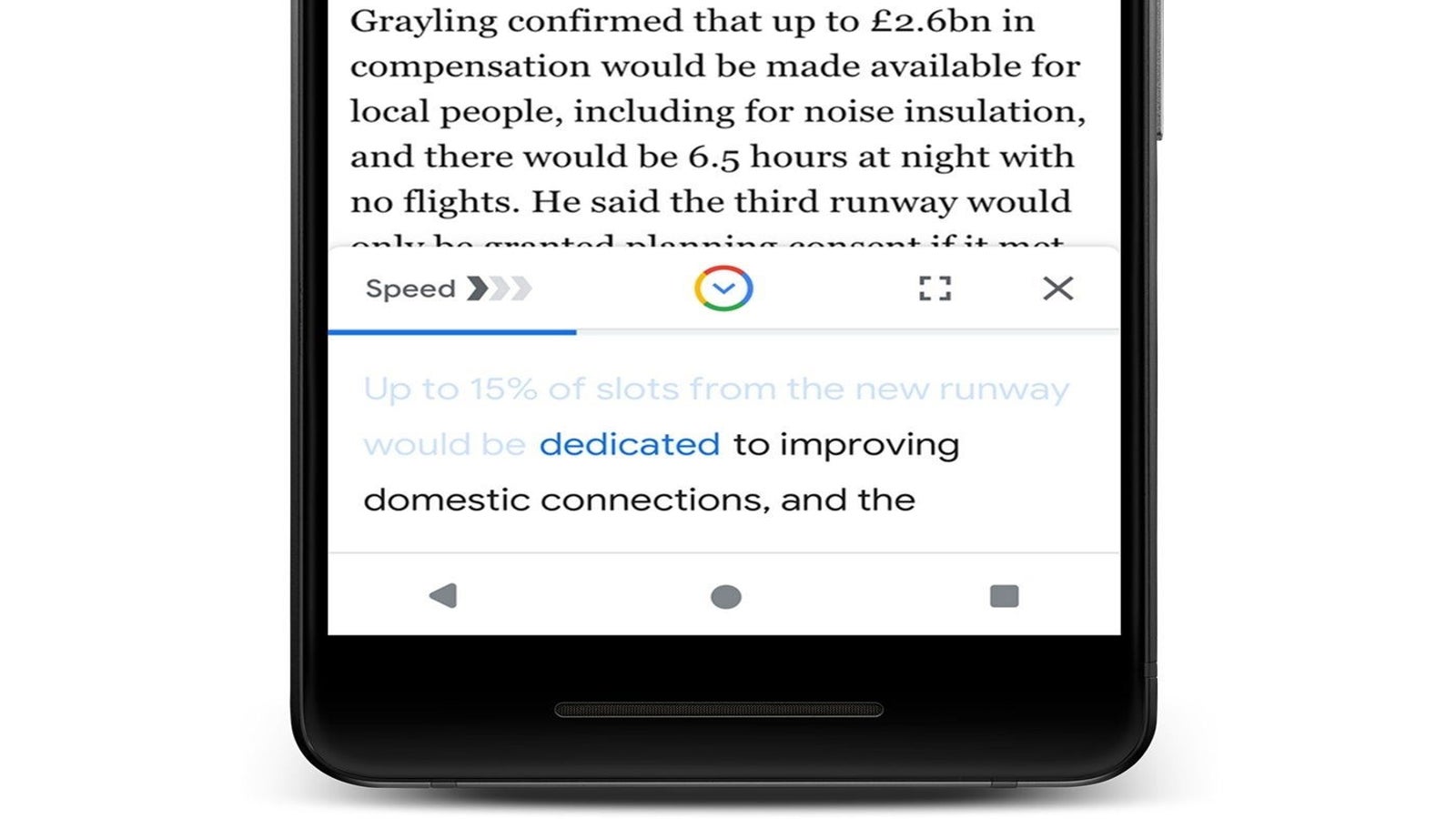 Según la propia compañía, el objetivo de esta actualización es el de permitir a los usuarios consumir contenido en forma de texto en cualquier momento y lugar, sin necesidad de detenerse a leer las noticias de sus medios favoritos. Para ello, la compañía recurre al procesamiento de lenguaje natural basado en inteligencia artificial, que permite "leer" en voz alta las noticias en 28 idiomas diferentes.