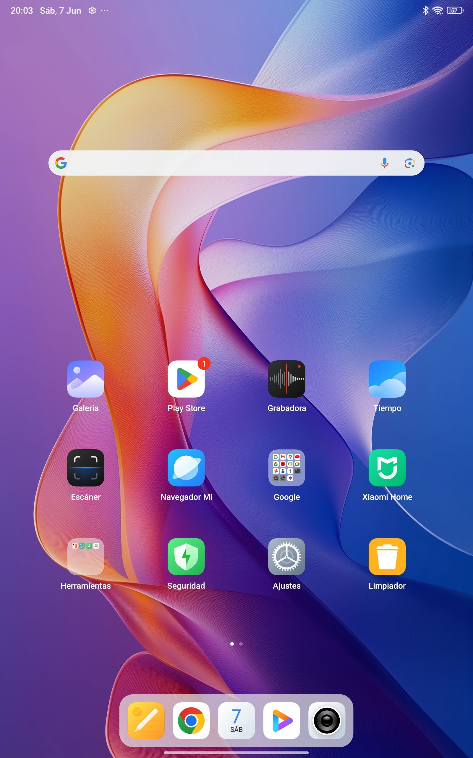 Respecto a la multitarea, es bastante cómodo poder ejecutar varias apps a la vez con el modo de pantalla dividida y que este se pueda activar simplemente pulsando un botón en la parte superior de la pantalla. Asimismo, la Redmi Pad 2 hereda el dock de aplicaciones que debutó en la Xiaomi Pad 6, el cual no solo es accesible desde el escritorio, sino también desde cualquier app que esté en primer plano deslizando hacia arriba desde el borde inferior del panel.