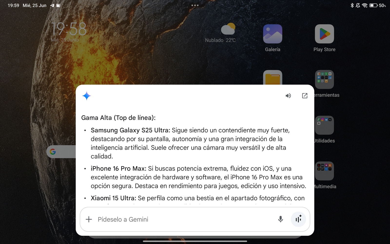Además, la Redmi Pad 2 ya trae activada por defecto la función de IA de Google "Rodea para buscar" o "Circle to Search", gracias a la cual vas a poder buscar información en la gran G simplemente rodeando con un círculo la parte de la pantalla que te interesa y también trae integrado Google Gemini, de tal forma que puedes invocar el chatbot de IA de Google tan solo pulsando el botón de encendido de la tablet.