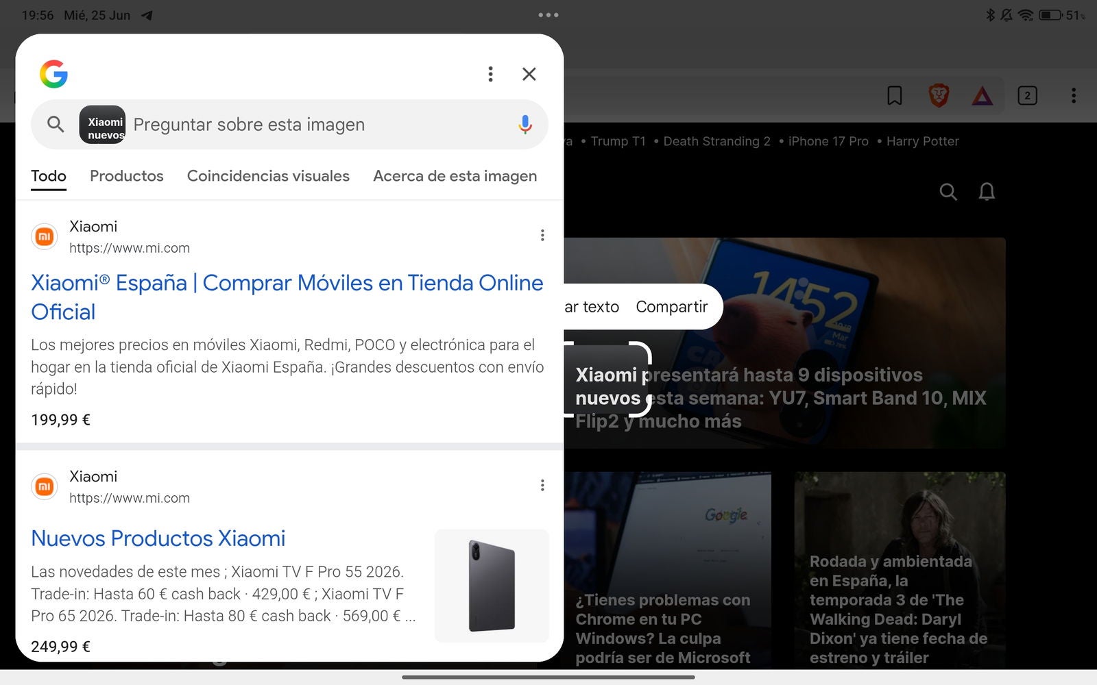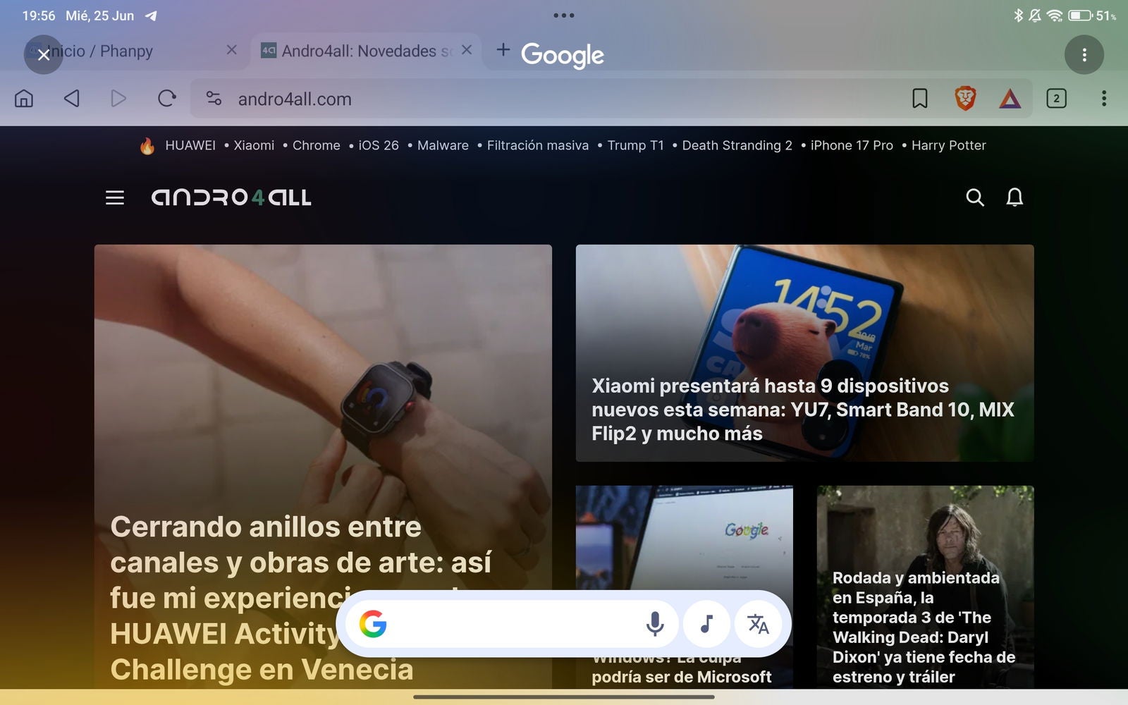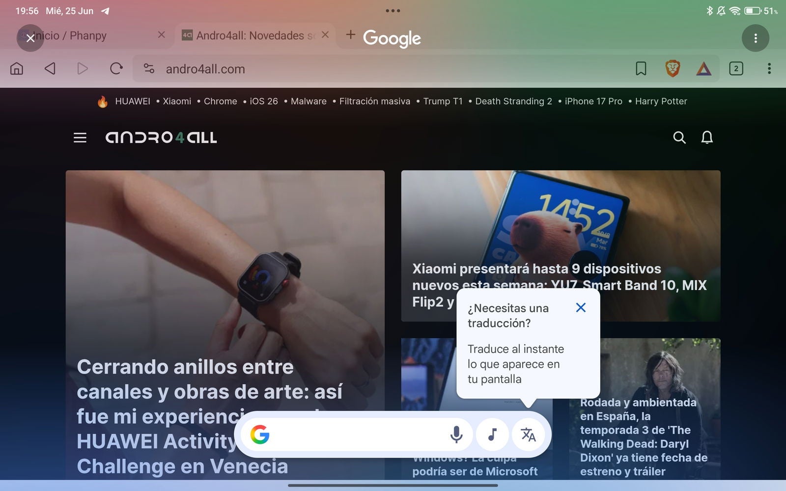 Un detalle que sí nos ha gustado es que apueste por una relación de aspecto 16:10, ya que esta nos ha permitido usar dos aplicaciones a la vez en su modo horizontal utilizando la función de pantalla dividida de HyperOS y ver todo tipo de contenidos multimedia de una manera realmente cómoda.