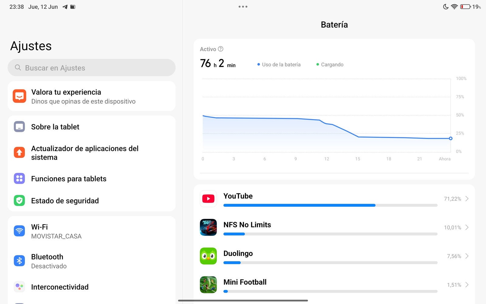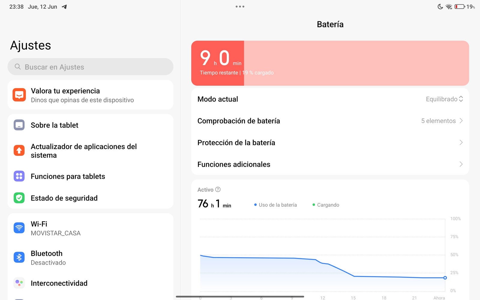 Otro de los aspectos diferenciales de la Redmi Pad 2 es su gran autonomía, ya que la nueva tablet barata de la marca china está equipada con una enorme batería de 9.000 mAh, la cual nos ha dado unos resultados impresionantes.