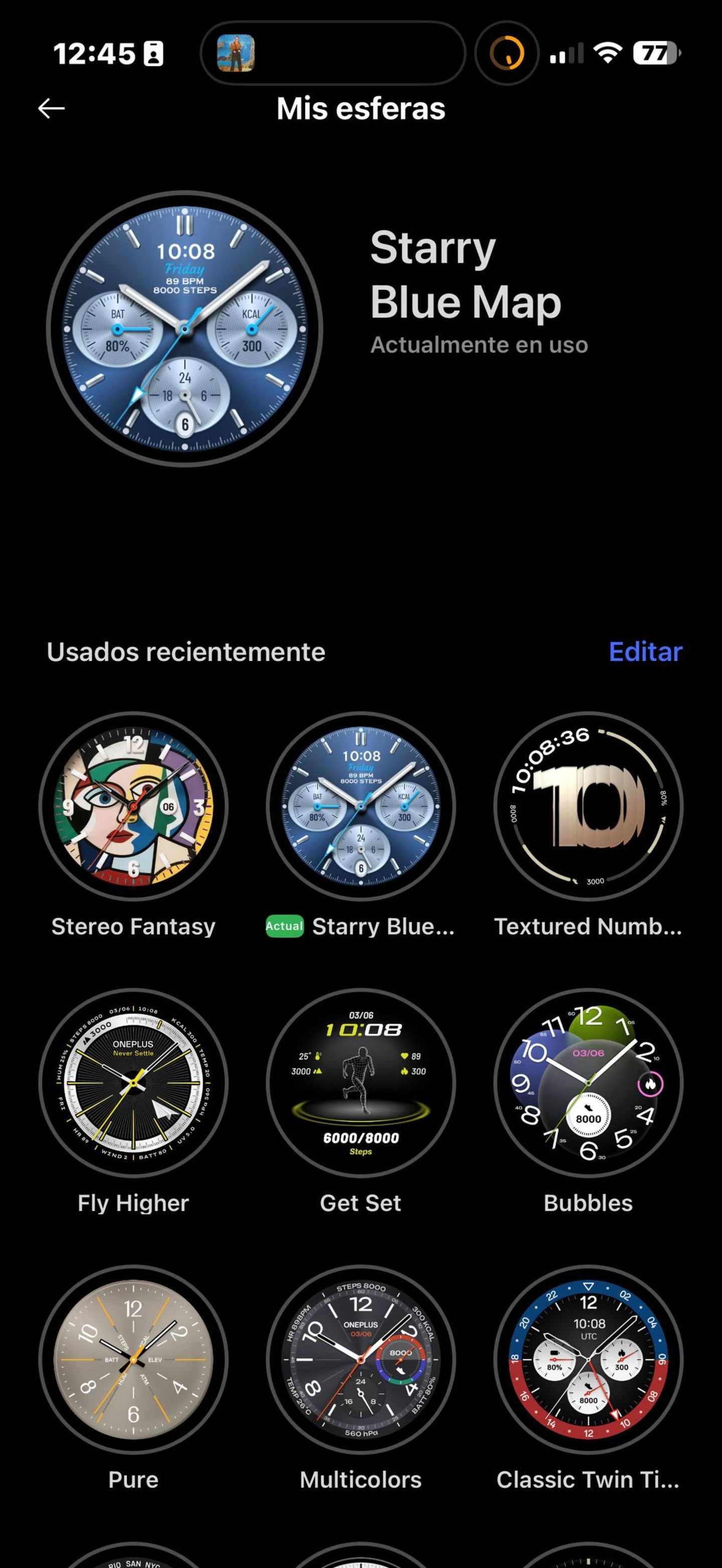 Para configurarlo, tienes que instalar la app OHealth en tu móvil. La descargas y emparejas el reloj. De este modo, puedes cambiar la configuración desde el móvil para ajustar las alarmas, elegir otra esfera o ver tus mediciones de salud o deportivas.