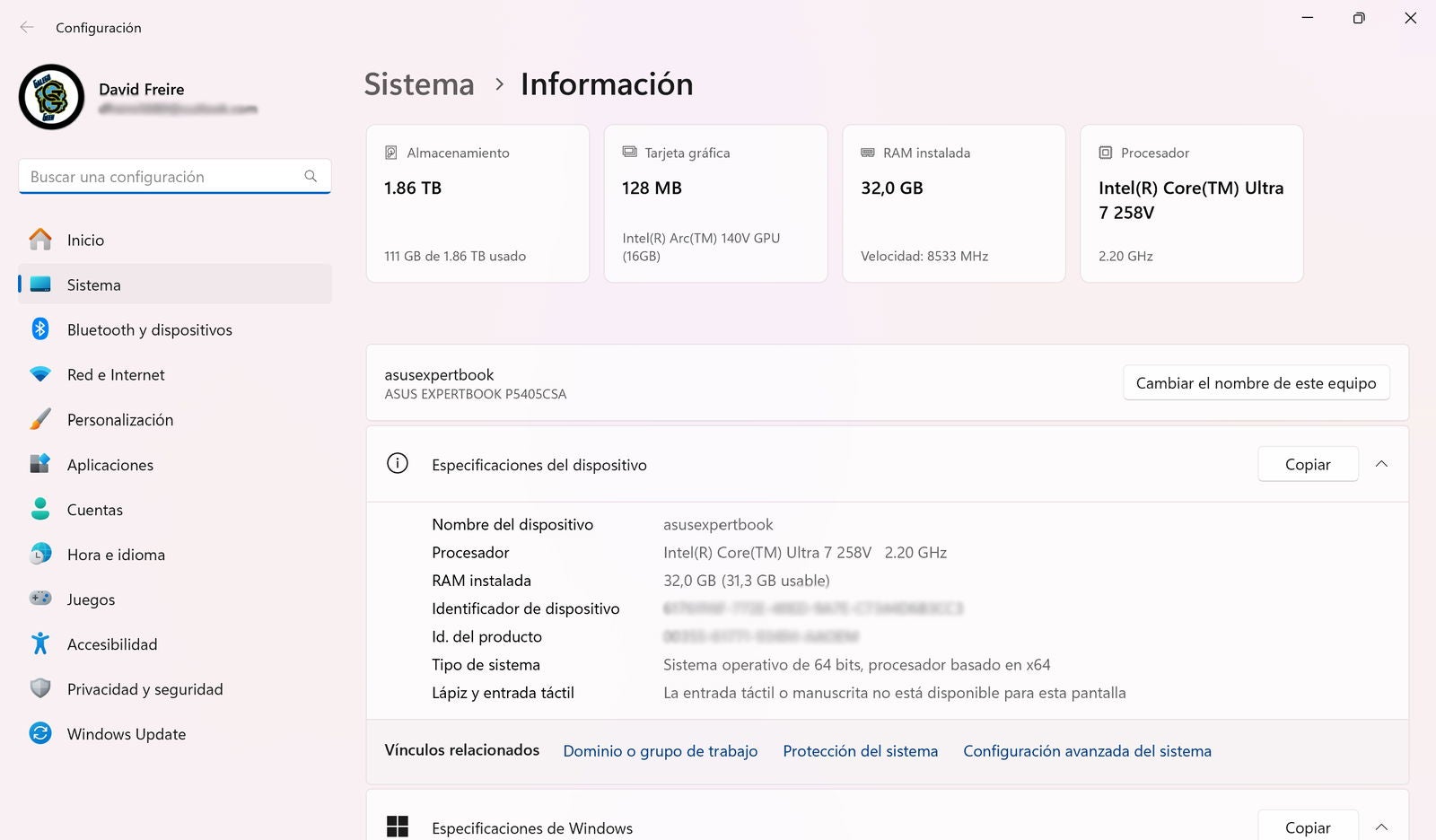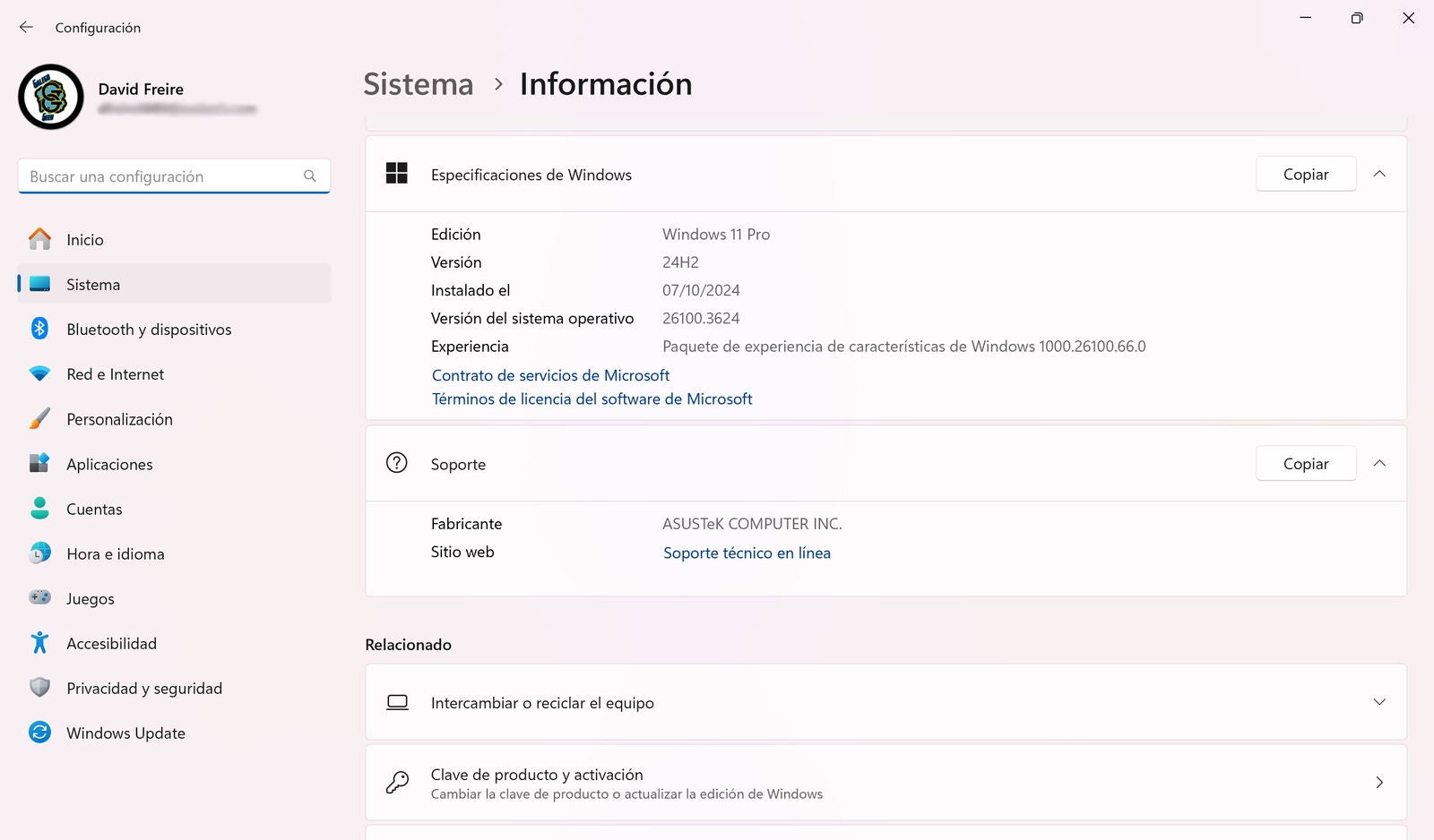 | Sistema operativo | Windows 11 Pro |