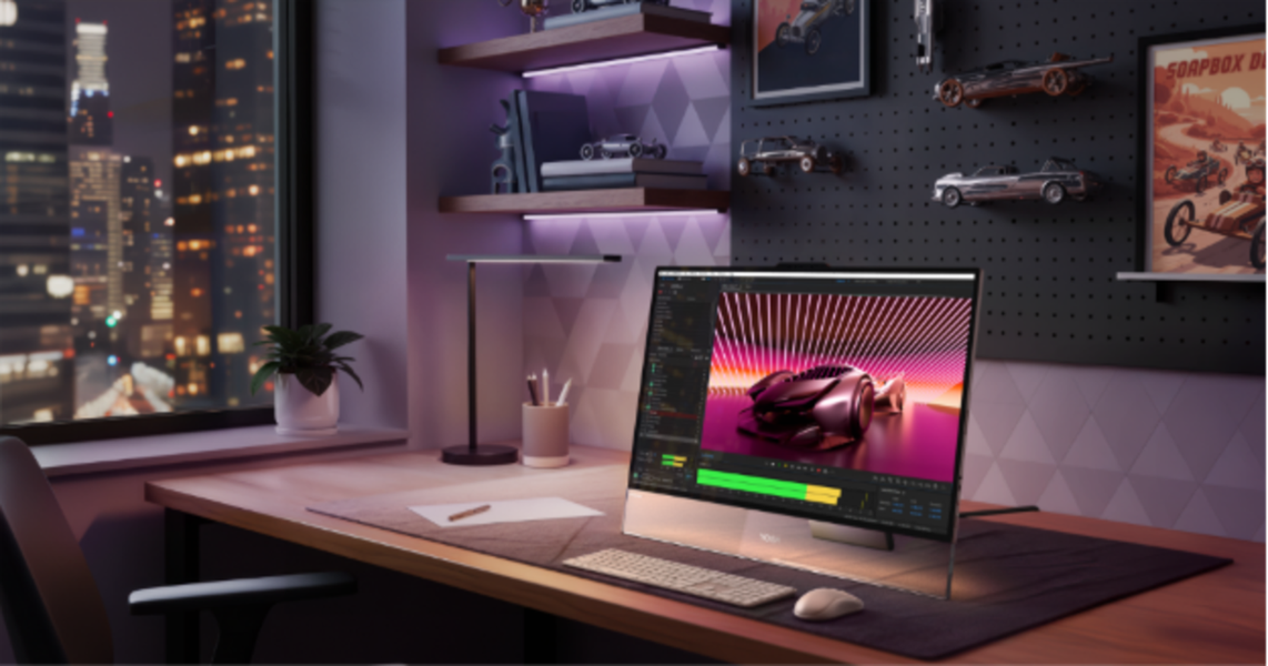 La familia se completa con formatos de escritorio. El Yoga AIO i Aura Edition es un todo en uno de 32 pulgadas con panel 4K OLED a 165 Hz, mientras que el Yoga Mini i es un mini PC de 0,65 litros y 600 gramos, ambos basados en Intel Core Ultra X7 Series 3 e integrando funciones de Adaptive Lighting. En monitores, Lenovo ha mostrado el Yoga Pro 27UD-10, un OLED de 27 pulgadas que estrena la certificación TÜV Rheinland “5 Star Perceptual Color Volume”.