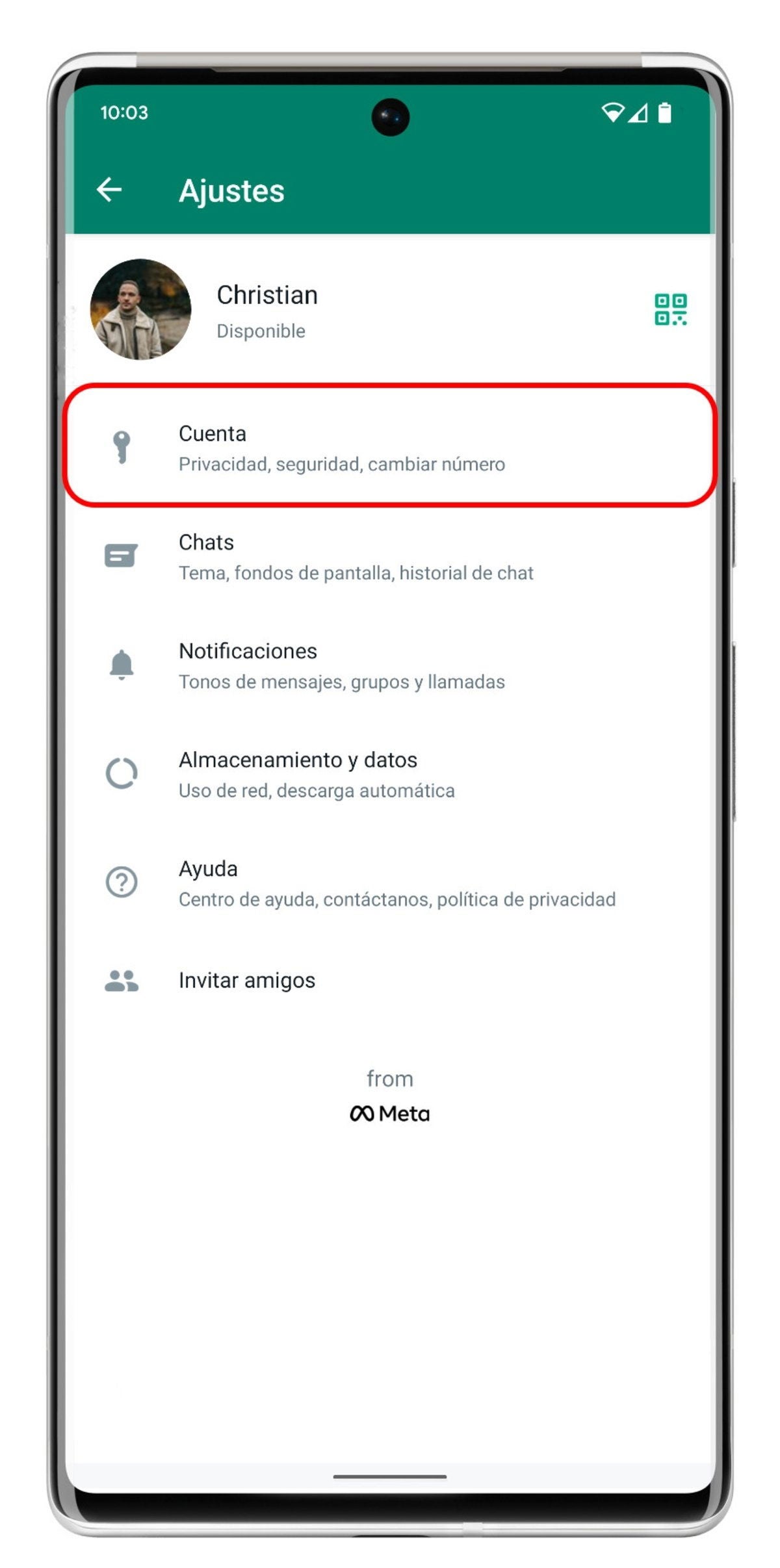 - Toca sobre "Ajustes" y, desde ahí, accede al apartado "Cuenta".