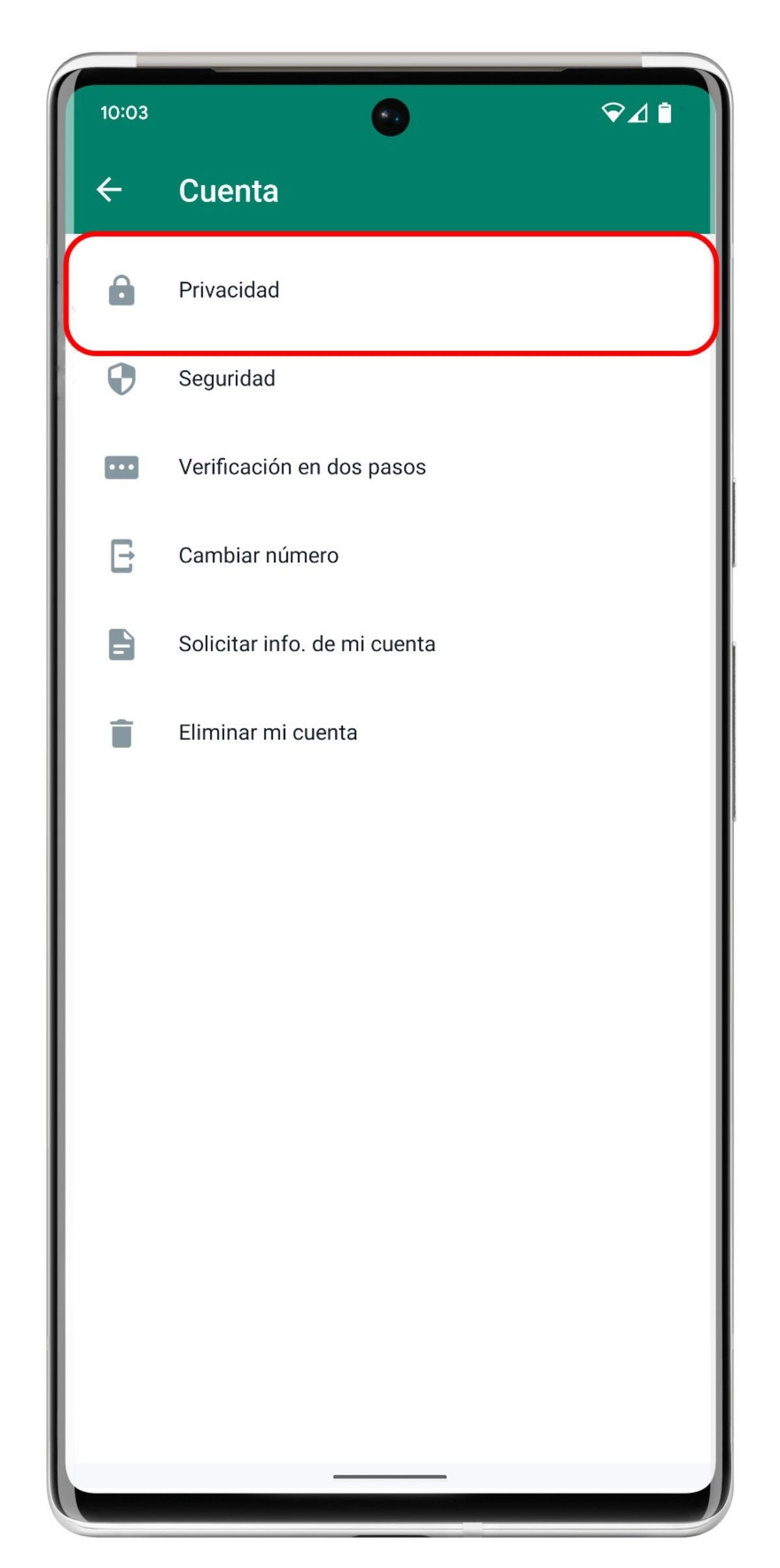 - Dirígete a "Privacidad", y desde ahí a "Contactos bloqueados".