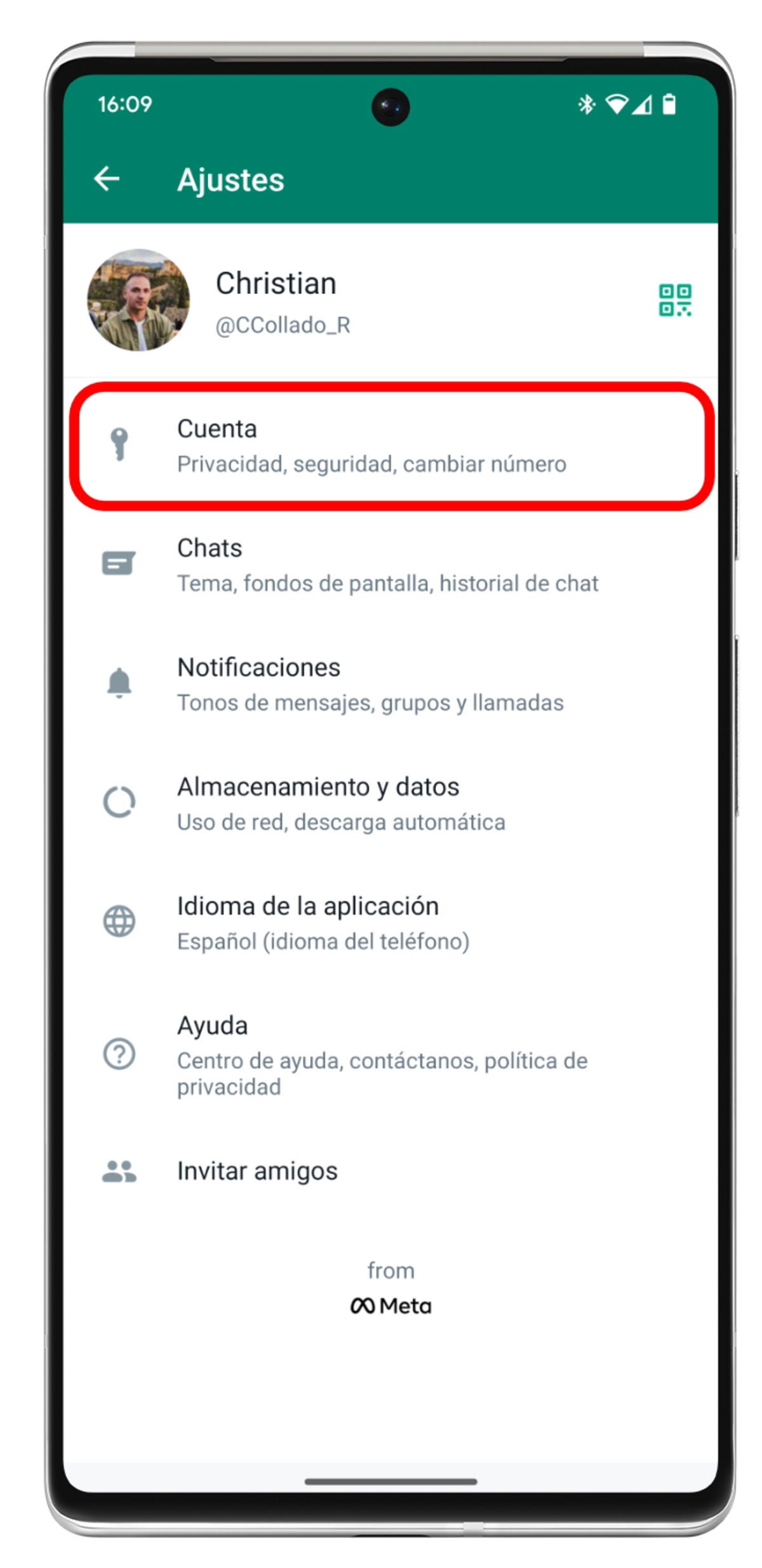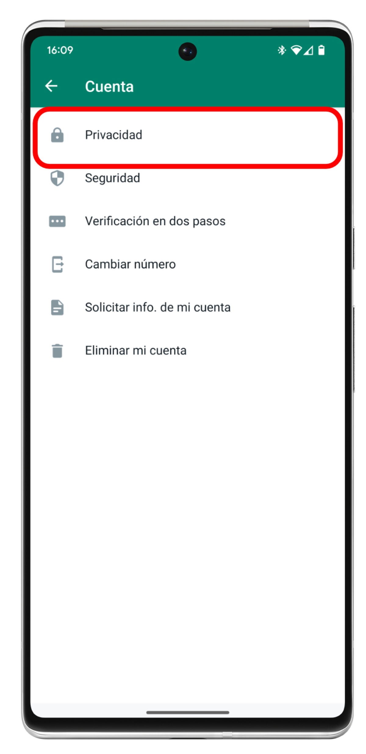 - Accede al apartado "Cuenta", y desde ahí toca en "Privacidad".