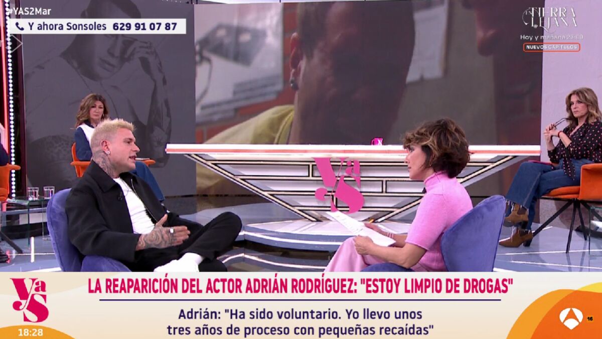 El actor de aclamadas ficciones españoles como 'Los Serrano' y 'Física o Química', Adrián Rodríguez, abandonó hace unas semanas el centro de desintoxicación en el que había ingresado en noviembre tras volver a sufrir una recaída y este lunes ha acudido al plató de 'Y ahora Sonsoles', donde ha relatado cuáles son sus nuevos proyectos y cómo está siendo su dura batalla contra las adicciones.