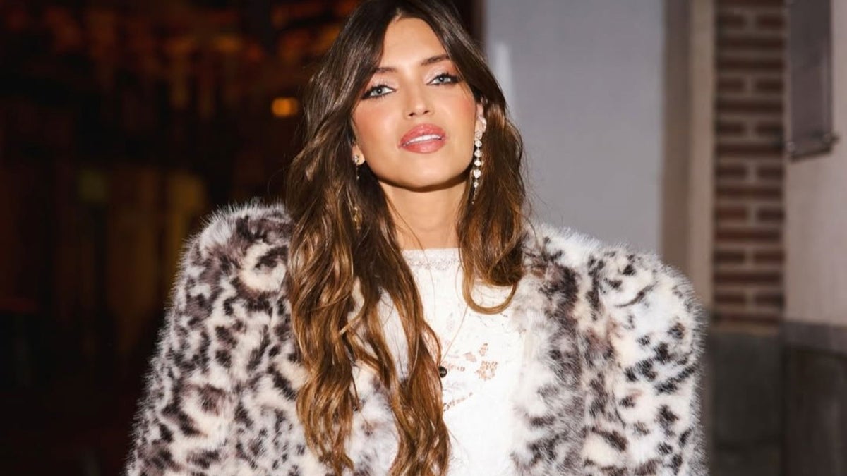 Lo que marca la diferencia es que se aleja de su registro más boho. Esta vez, Sara apuesta por un glam más rotundo, perfecto para planes nocturnos y cenas invernales. El abrigo, firmado por Isabel Marant y con un precio que supera los 1.200 €, combina piel sintética, hombreras marcadas y un estampado con un carácter muy definido. Es esa clase de prenda capaz de transformar un vestido sencillo y hacer que todo el conjunto gane fuerza.