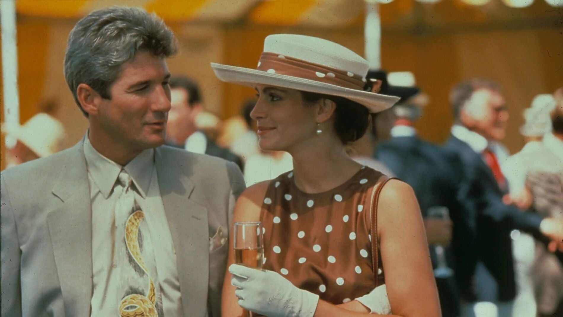 Basta ver un vestido marrón con lunares blancos para que muchos piensen en 'Pretty Woman'. El diseño que llevaba Julia Roberts en la escena del partido de polo se convirtió en uno de los looks más recordados del cine de los noventa.