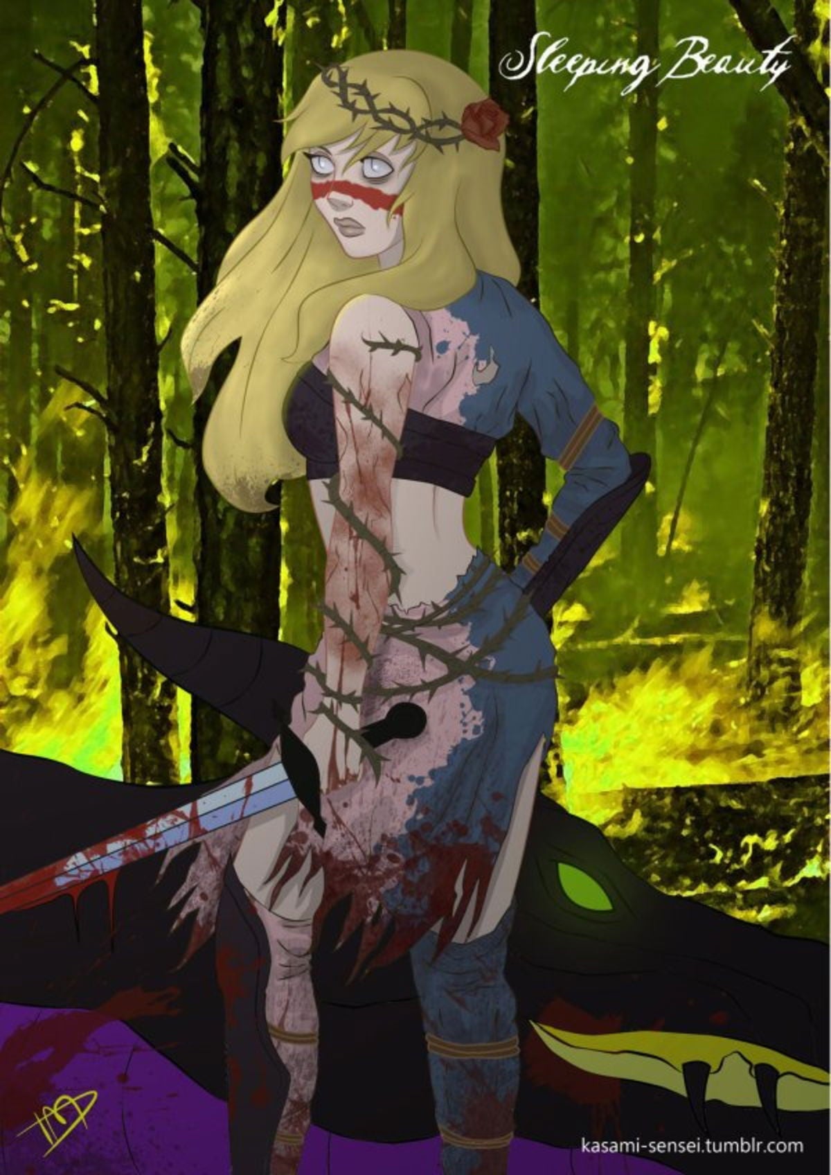 La verdad es que la colección de Kasami-Sensei de protagonistas Disney con un toque malévolo no está nada mal y casi todas dan la sensación de estar en poder de decidir sobre su propio destino, aunque este sea trágico, cruel y despiadado. El artista ha titulado a este conjunto de ilustraciones como Twisted Disney, lo que no está nada mal, considerando que los diseños que ha realizado son verdaderamente retorcidos o inquietantes. Atrás quedan esas princesas de pelo arreglado y que ondea al viento sin ventilador, o sus áureos rostros libres de imperfecciones, aquí todas tienen facciones que han sido modificadas por su oscuro mundo interior.