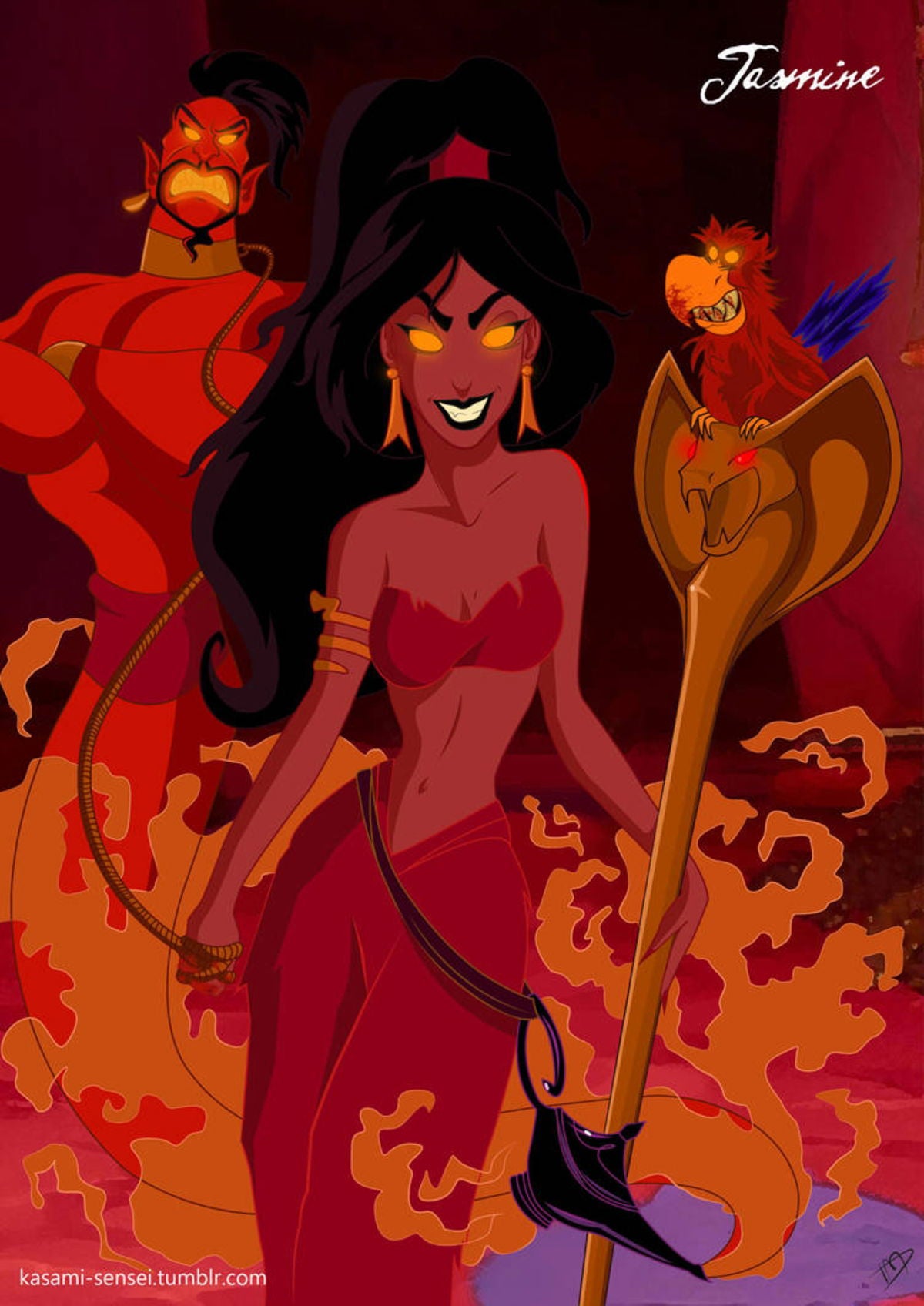 La factoría de animación por excelencia, Disney, siempre se ha caracterizado por crear personajes femeninos protagonistas en forma de princesas que suelen tener una actitud demasiado bondadosa y muy poco poder de decisión en todo lo que les sucede. Pero Disney, aunque una empresa desconocedora de lo que supone crear a un villano o a un personaje malvado, se llevaría las manos a la cabeza (o quizás lo celebraría a día de hoy) si viera como muchas de sus princesas más queridas se pasan al lado oscuro, haciendo que Maléfica parezca toda una amateur en esto de las artes malévolas. Esta idea de crear Princesas Disney antagónicas se le ha ocurrido al usuario de DeviantArt Kasami-Sensei.