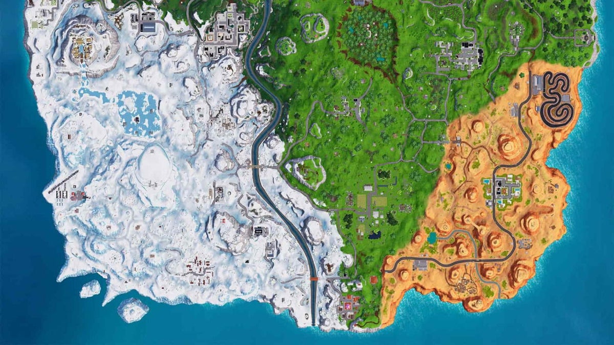 El choque del iceberg ha hecho que el mapa de Fortnite sea ahora más cuadrado y más extenso, por lo que habrá una mayor cantidad de terreno a explorar, y seguramente, más lugares en los que tender una buena emboscada a tus enemigos. Para que veas cómo es el nuevo mapa al completo, te lo dejamos a continuación para que lo disfrutes y vayas ya pensando en nuevas estrategias de combate: